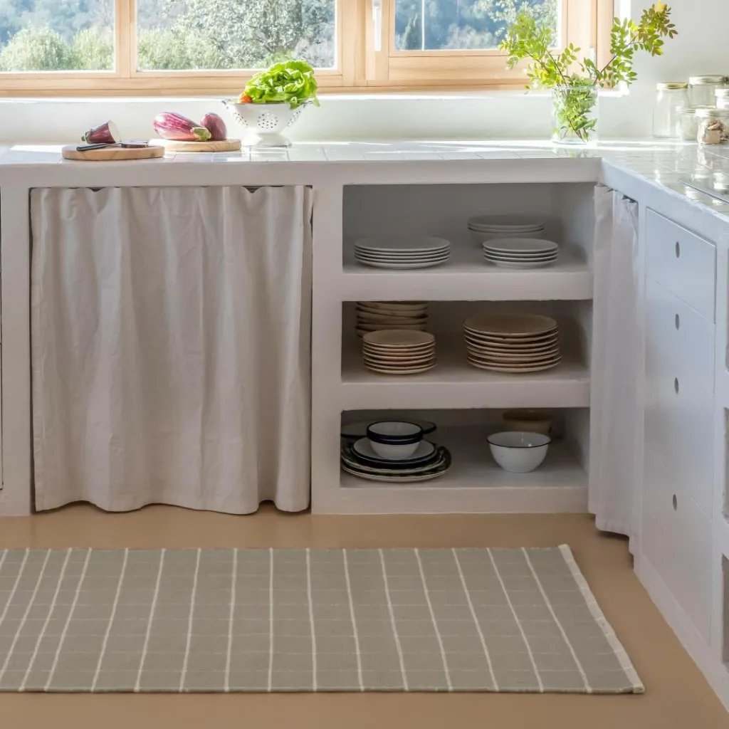 Mit seiner hellen Grundfarbe und den zarten Linien ist der Tiles 1 Teppichläufer ein unaufdringlicher und edler Bodenbelag, der einem Durchgang oder dem Flur eine feine Struktur schenkt. Kreuz und quer über die Teppichfläche gespannt bilden die Linien ein dezentes Raster, das einmal enger und einmal weiter gezeichnet ist und den Läufer in einen quadratischen und einen rechteckigen Teil gliedert. Vollständig aus recyceltem PET hergestellt zeichnet sich der Tiles 1 Teppichläufer durch seine nachhaltige Produktion aus. Er ist in traditioneller Dhurrie-Technik von Hand gewebt und besticht durch seine hohe Strapazierfähigkeit. Damit eignet er sich nicht nur für das Wohnzimmer oder den Vorraum, sondern passt ebenso gut ins Bad. Auch im Außenbereich findet der Tiles 1 Teppichläufer Verwendung.