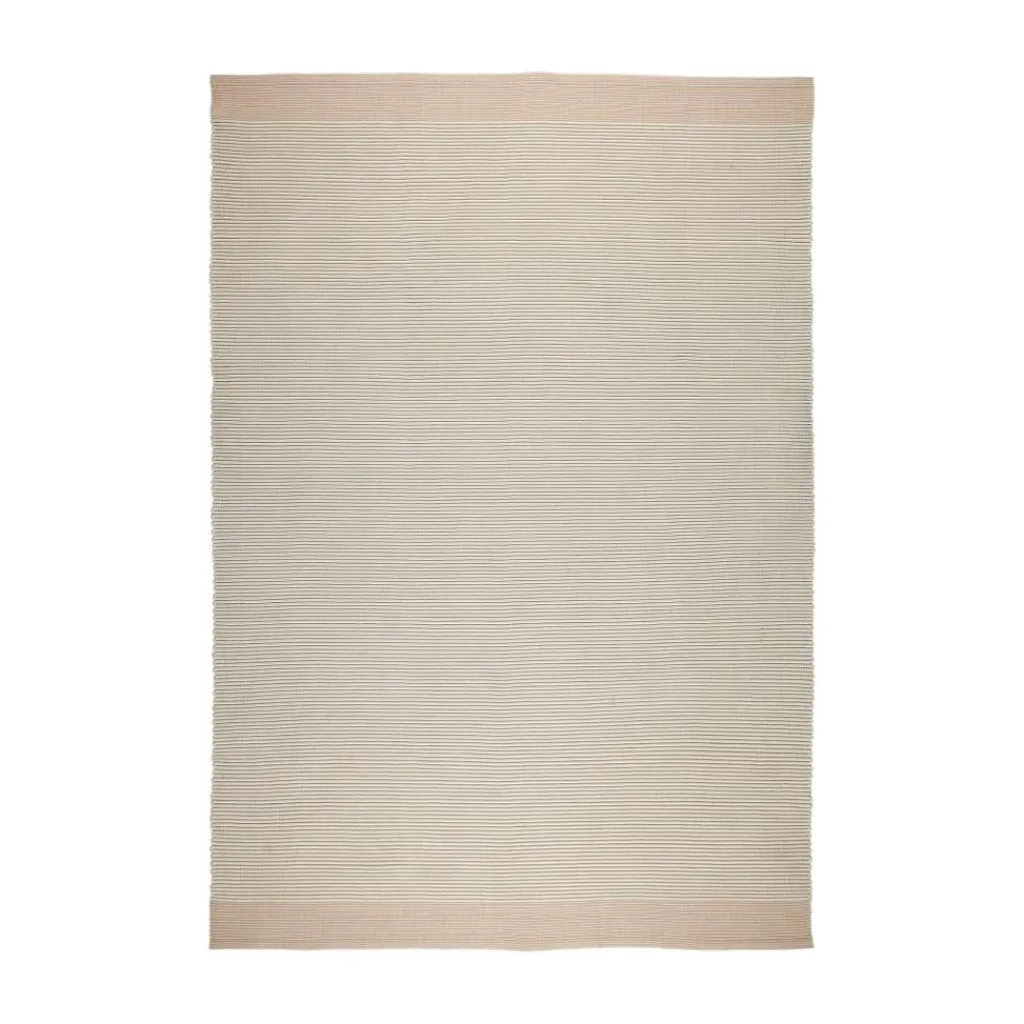 Im Spool Teppich 200x300cm verbinden sich Funktionalität und eine gemütliche Ästhetik. Erhältlich ist der Teppich in unterschiedlichen natürlichen Farbkombinationen. Den hellen Hauptton ergänzt und erfrischt eine weitere Farbe. Zwischen den parallel verlaufenden Linien der strukturierten Oberfläche entsteht durch den eingewebten Akzentton ein subtiler Farbeffekt. Ebenso ist die Bordüre an den beiden Breitseiten farblich abgesetzt. Der Teppich ist aus nachhaltigen Materialien gefertigt. Er besteht nicht aus Wolle, sondern aus recyceltem Plastik, das zuvor zu einem weichen und dennoch starken PET-Garn gesponnen wurde.