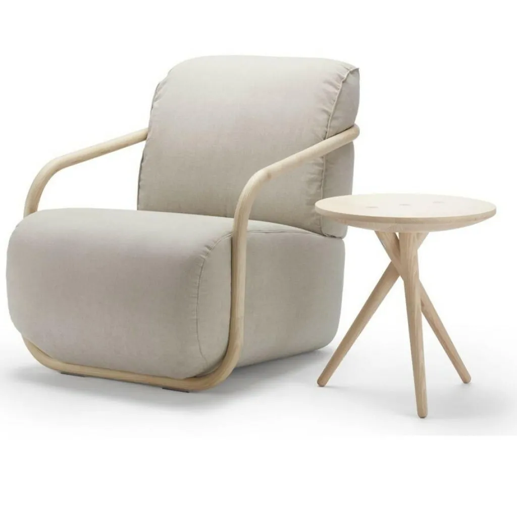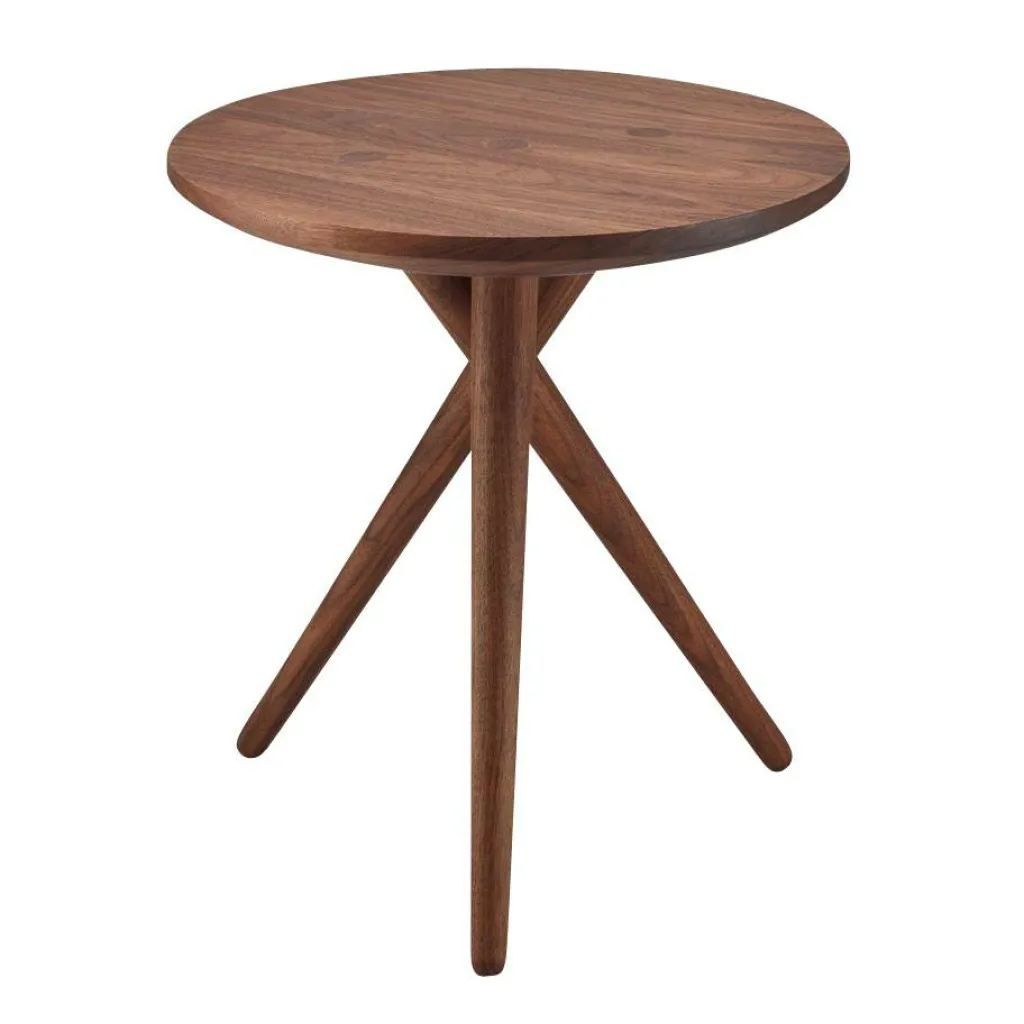 Mit seinen kunstvoll gedrehten Beinen und der runden Platte aus Massivholz ist der 1025 Beistelltisch ein formschönes Möbelstück, das minimalistische Anklänge mit einer raffinierten Konstruktion vereint. Die drei spitz zulaufenden Holzbeine stehen in einem Winkel von 120 Grad zueinander und beschreiben imaginäre Kreise, die zur grafisch geprägten Erscheinung des Möbelstücks beitragen. Der Tisch passt ausgezeichnet in Ihr Wohn- oder Esszimmer und fügt sich harmonisch in ein neutrales oder minimalistisches Umfeld ein. Eine Besonderheit ist die feine Maserung des Holzes, die sowohl auf der Tischplatte als auch an den Beinen deutlich erkennbar ist und den grafischen Effekt des Designs zusätzlich unterstreicht.
