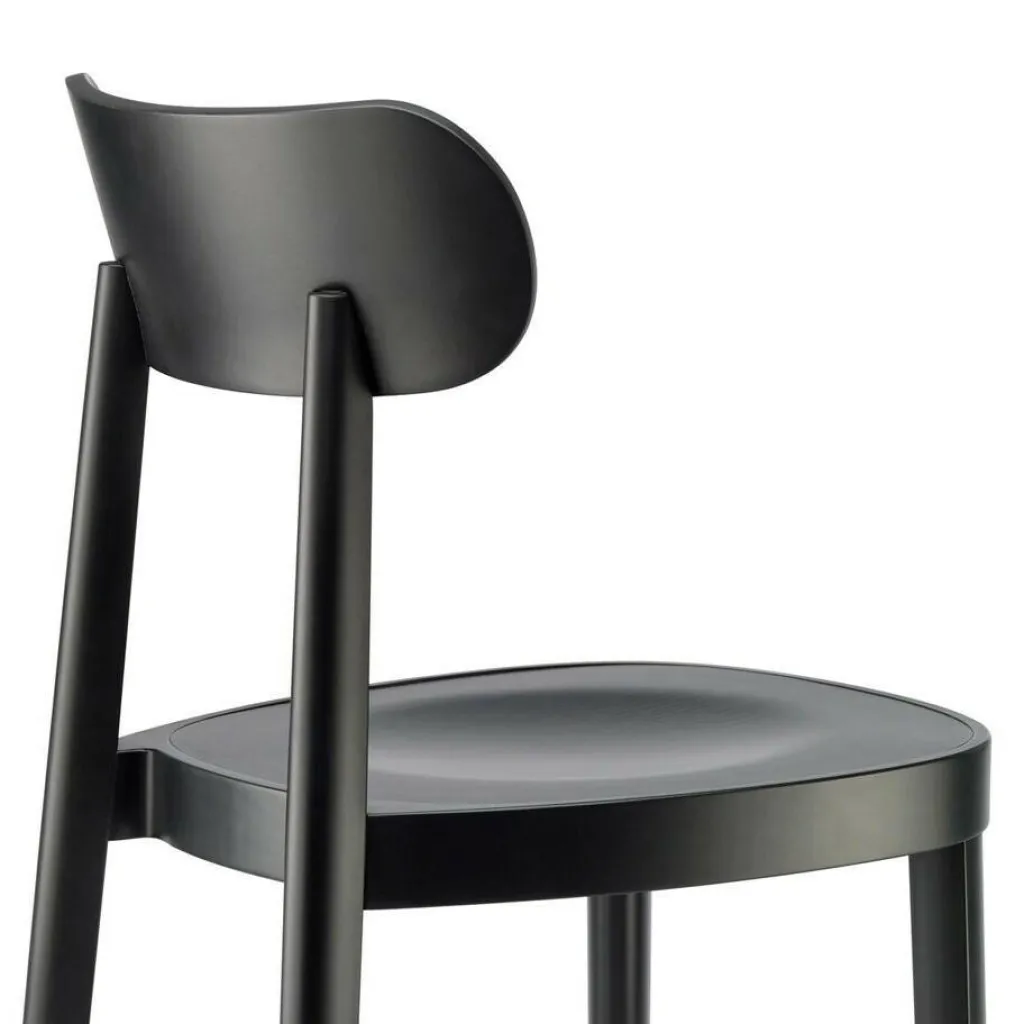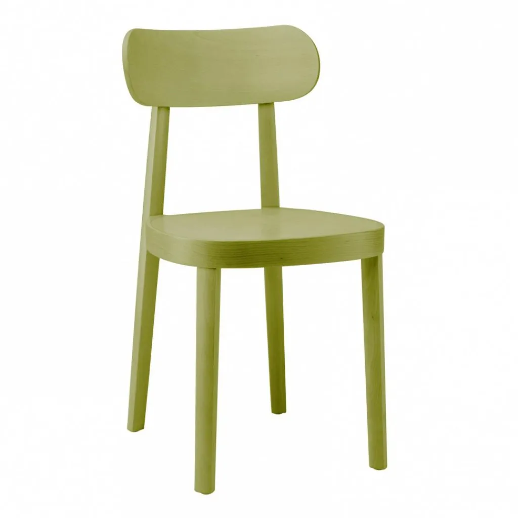 Der aus massivem Buchenholz gefertigte und in verschiedenen Farbausführungen erhältliche 118 M Stuhl mit Muldensitz besitzt eine Sitzfläche von 42 x 50 cm. Seine Sitzhöhe beträgt 46 cm und ist damit perfekt, um einen Tisch Ihrer Wahl zu ergänzen. Designtechnisch liegt der Fokus auf den Stuhlbeinen, deren Rückseite sanft gerundet ist, während die Vorderseite derselbigen eindeutige Kanten aufweisen und damit einen interessanten Kontrast des farbig gebeizten Stuhls verwirklichen. Die hufeisenförmige Sitzfläche ist leicht geformt und garantiert so einen perfekten Sitzkomfort auch während längerer Abendessen. Diese stellt gleichzeitig eine Reminiszenz an den Urentwurf des Thonet-Stuhls dar.