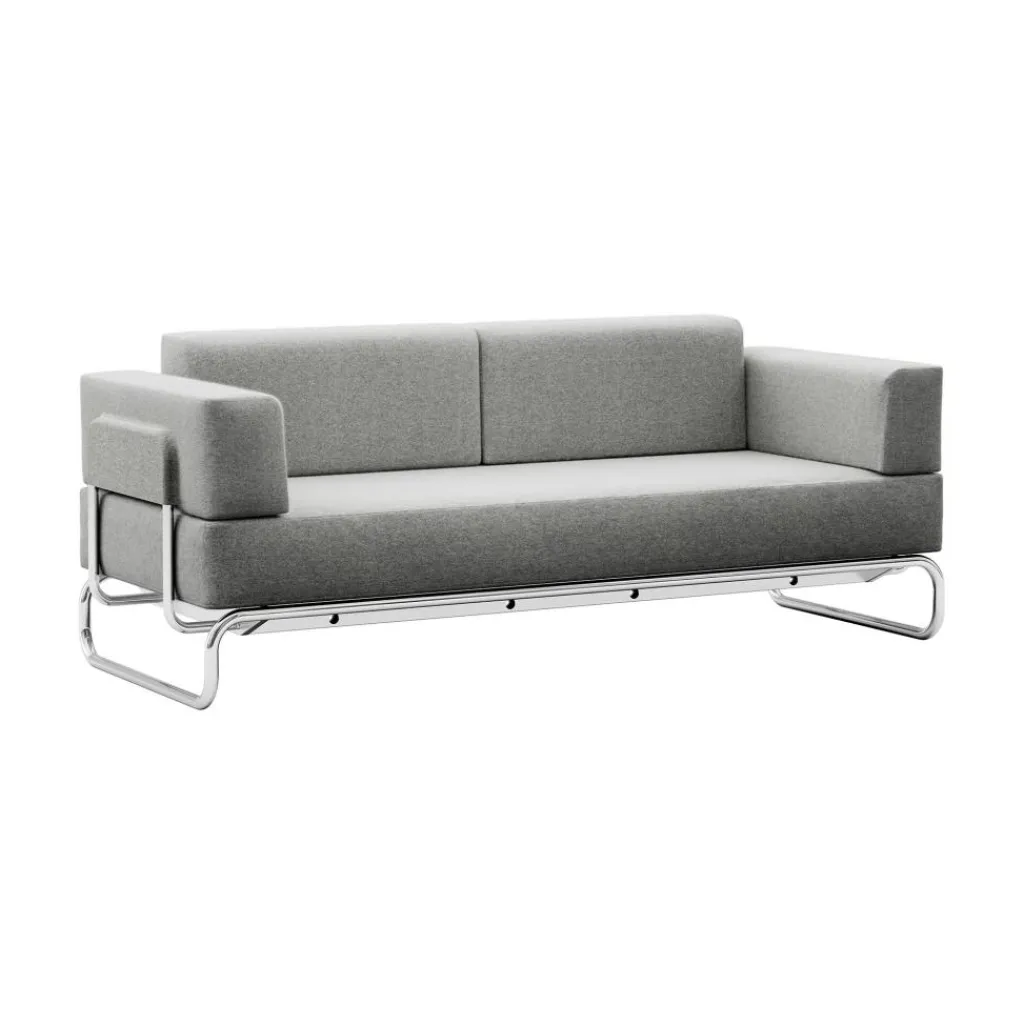 Das S 5002/C001 2-Sitzer Sofa wurde von James Irvine für die Marke Thonet entworfen. Das Modell orientiert sich an klassischen Sofas mit Stahlrohrgestellen, die es seit den 1930er Jahren gibt. Das wandelbare Möbelsytem stammt aus dem Jahr 2006.