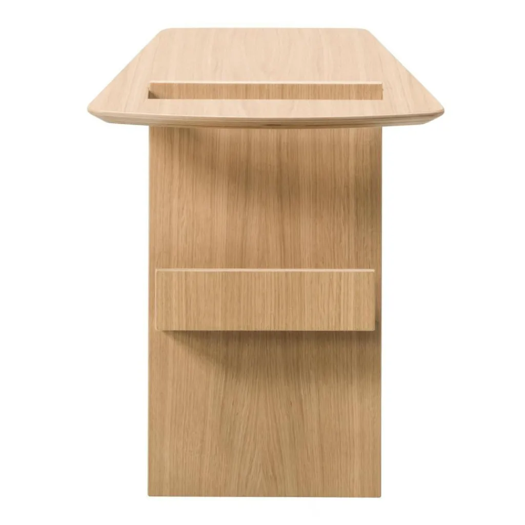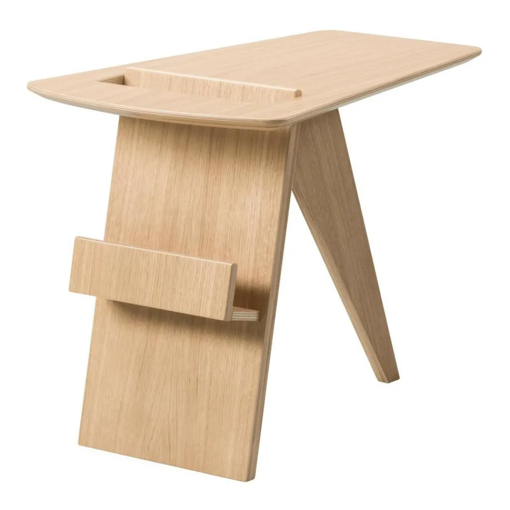 Mit einer Länge von 40,5 cm und einer Breite von 47 cm bietet der Magazine Beistelltisch einerseits ausreichend Platz zur Ablage von Zeitschriften oder Zeitungen, andererseits fügt er sich durch seine kompakte Beschaffenheit problemlos in den Raum ein und ergänzt diesen, ohne ihn überladen wirken zu lassen. Bei einer angenehmen Höhe von 57,5 cm lässt sich die Oberfläche des Tisches bequem vom Sofa aus erreichen. Gefertigt aus hochwertiger Eiche, lässt sich das Designerstück mit einem Gewicht von nur 4,6 kg dennoch spielend leicht im Raum bewegen.
