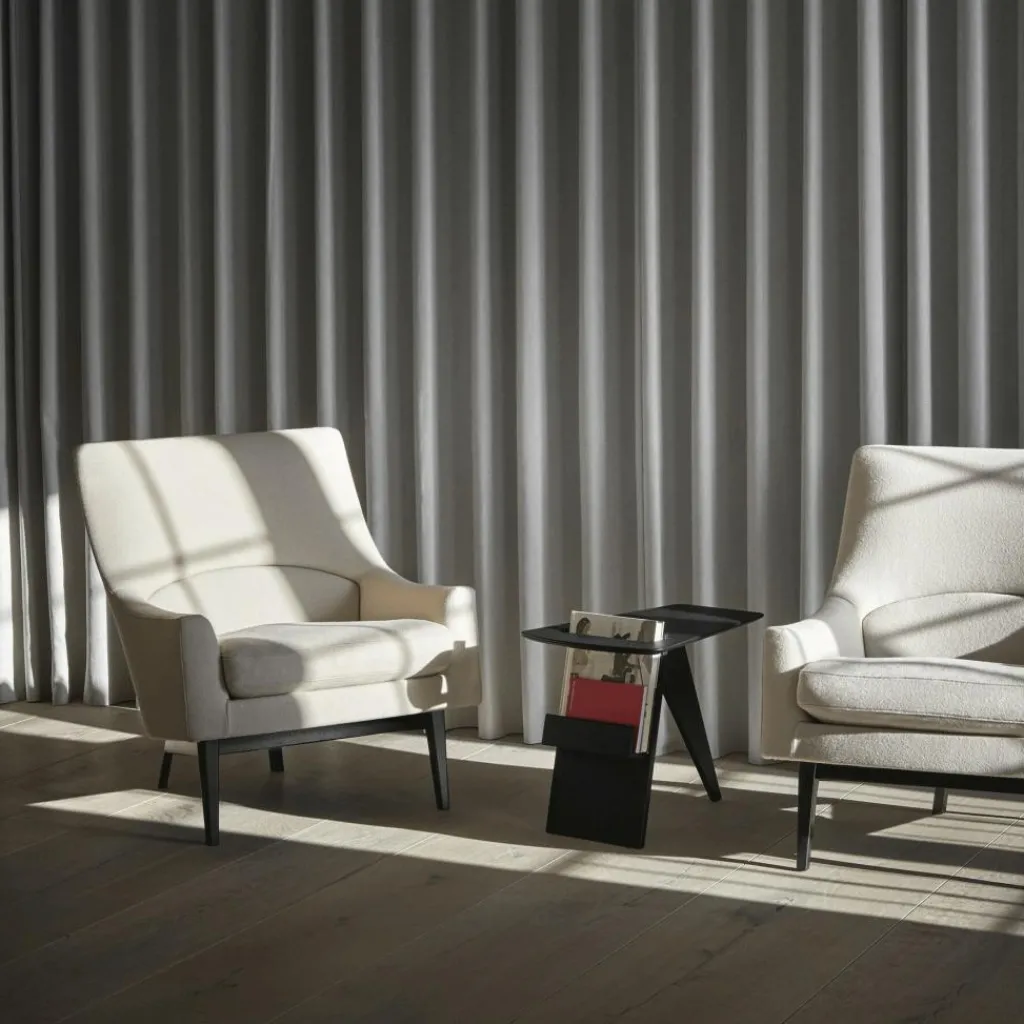 Der Magazine Beistelltisch wurde von Jens Risom für die Marke Fredericia entworfen und unterliegt ganz dem Arbeitsprinzip des dänischen Designers. So sollte auch dieses Möbelstück eine Liaison aus interessantem Äußeren und einer funktionellen Komponente bilden. Das Ergebnis ist ein ästhetisch ansprechender Beistelltisch, der das Interesse des Betrachters weckt und zugleich mit seiner praktikablen Silhouette den Raum ergänzt.