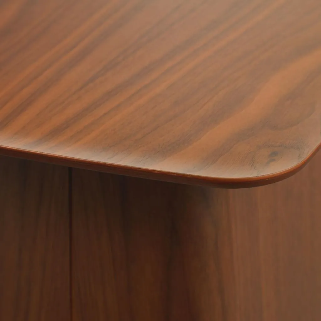 Sanfte Schwünge und abgerundete Formen kennzeichnen das Design dieses Tischchens, das sich ebenso zum Abstellen von Drinks und Snacks beim Fernsehen wie zum Ablegen der Lektüre in einer Leseecke eignet. Die Ränder der Tischplatte zeigen leicht nach oben, was dem Wooden Side Table Beistelltisch S einen japanischen Touch verleiht. Er zeigt sich damit zudem auch sehr praktisch, denn so können abgestellte Dinge nicht über den Rand hinaus rutschen. Im Vergleich zur schlanken Platte präsentiert sich der mittig positionierte Fuß des Tisches besonders voluminös und wirkt dadurch robust und stabil. Gefertigt aus formverleimtem Schichtholz zeichnet sich der Wooden Side Table Beistelltisch S darüber hinaus durch seine lange Haltbarkeit aus. Seine Furnier zeigt je nach gewählter Ausführung eine feinere oder kontrastreichere Maserung. Als Solitär ein attraktiver Hingucker und zusammen mit mehreren Wooden-Side-Tables Teil einer großzügigen Ablagefläche eignet sich das Tischchen sowohl für die Lounge oder Lobby eines Hotels sowie für das Wohnzimmer.