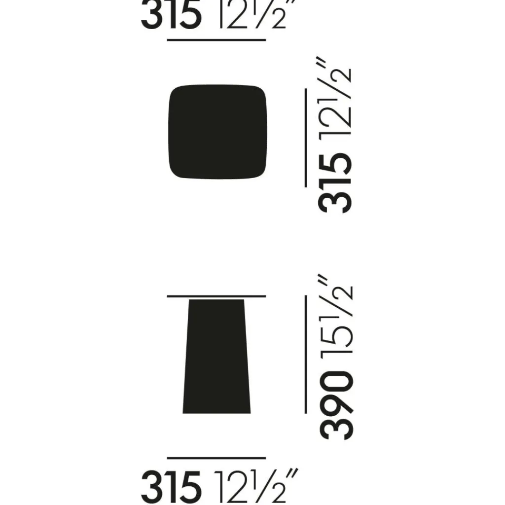 Der Wooden Side Table Beistelltisch S ist 31,5cm lang und ebenso breit. Seine Höhe ist 39cm. Das elegante Tischchen wiegt 3kg. Es ist in Ausführungen mit Furnieren aus verschiedenen Holzarten erhältlich.