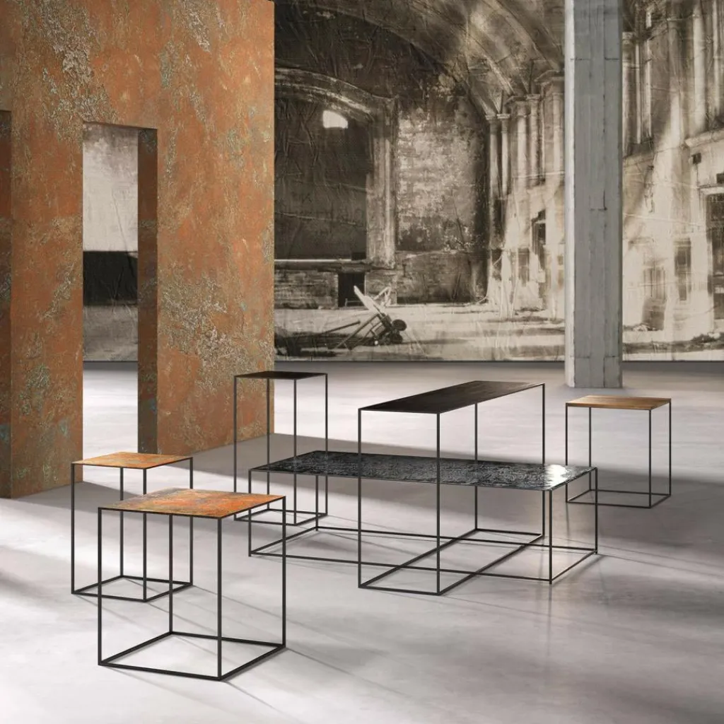 Das Slim Irony Art Beistelltisch 41x41x46cm wurde von Maurizio Peregalli für die Marke Zeus entworfen. Er ist ein richtiges Kunstobjekt, das jeden Raum verschönert.