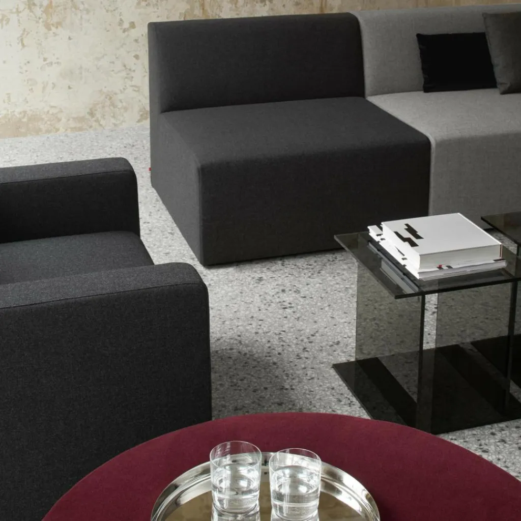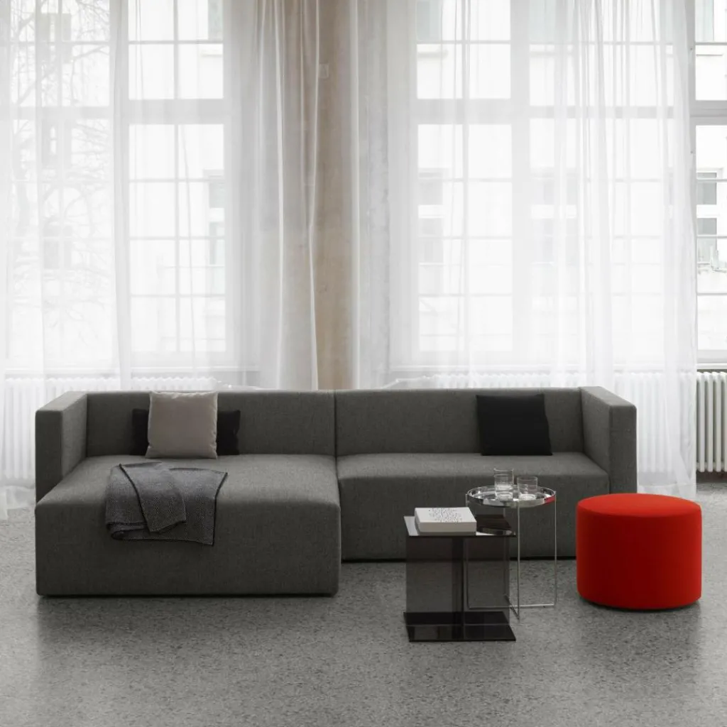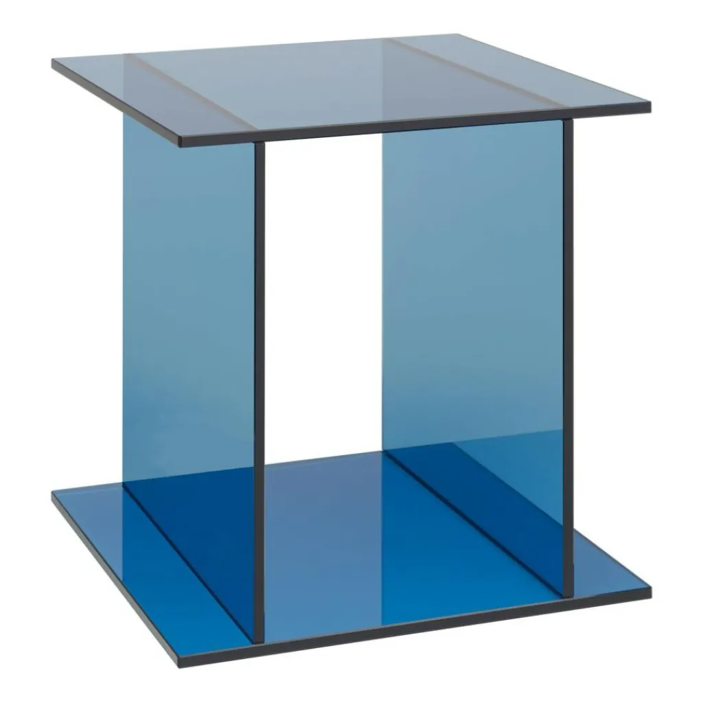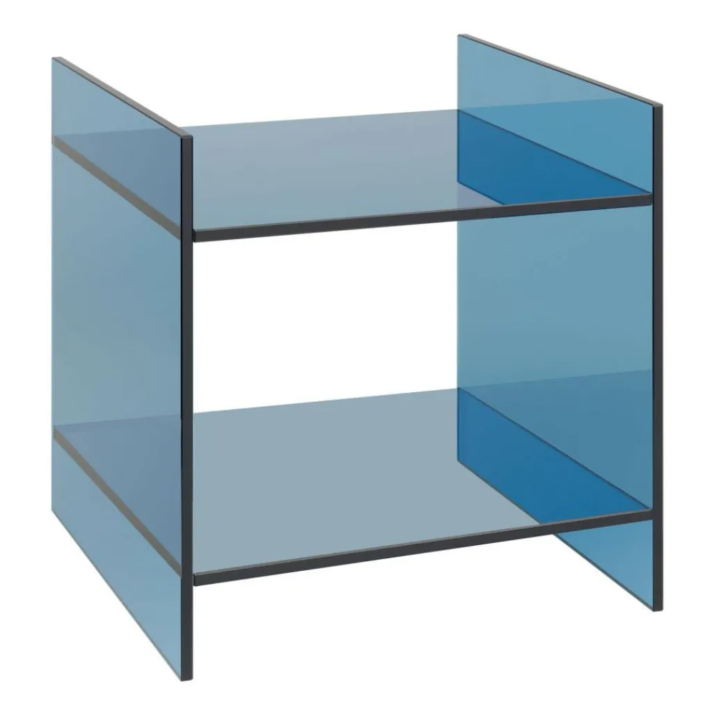 Der 2007 vorgestellte Drei Beistelltisch gehört zum hauseigenen Sofasystem Shiraz, das in seiner Gesamtheit eine aufregende Verschmelzung zwischen Orient und Okzident veranschaulicht. Der Beistelltisch besteht aus vier gläsernen Platten, die durchgehend eingefärbt sind. Die offene Gestaltung und die potenzielle Verwendung des kleinen Tisches in zwei unterschiedlichen Positionen nehmen Bezug auf das klassische Bauhaus und die Entwürfe der Moderne, die Europa zu Beginn des 20. Jahrhunderts prägten. Gleichzeitig weist die Verwendung des bunten Glases in den Osten und setzt sich damit materialtechnisch mit den Errungenschaften eines anderen Kulturkreises auseinander. Der Drei Beistelltisch ist trotz seiner zahlreichen Interpretationen ein grafisches Möbelstück, das in seinen Umrissen einem Quadrat mit der Seitenlänge von 40cm folgt. Ob neben dem Bett oder neben der Couch – genießen Sie das Spiel mit den Gegensätzen!