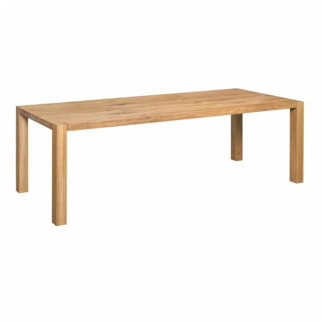 Schlicht und ohne Schnörkel konzipiert, wirkt der große Esstisch mit den quadratischen Tischbeinen edel, lässig und zeitlos schick. Damit sorgt er im Essbereich für viel Platz und ein wohnliches Ambiente. Ob in der Bauernküche oder im Esszimmer, als festliche Tafel oder als Treffpunkt für die Familie – dieser Tisch macht eine gute Figur.