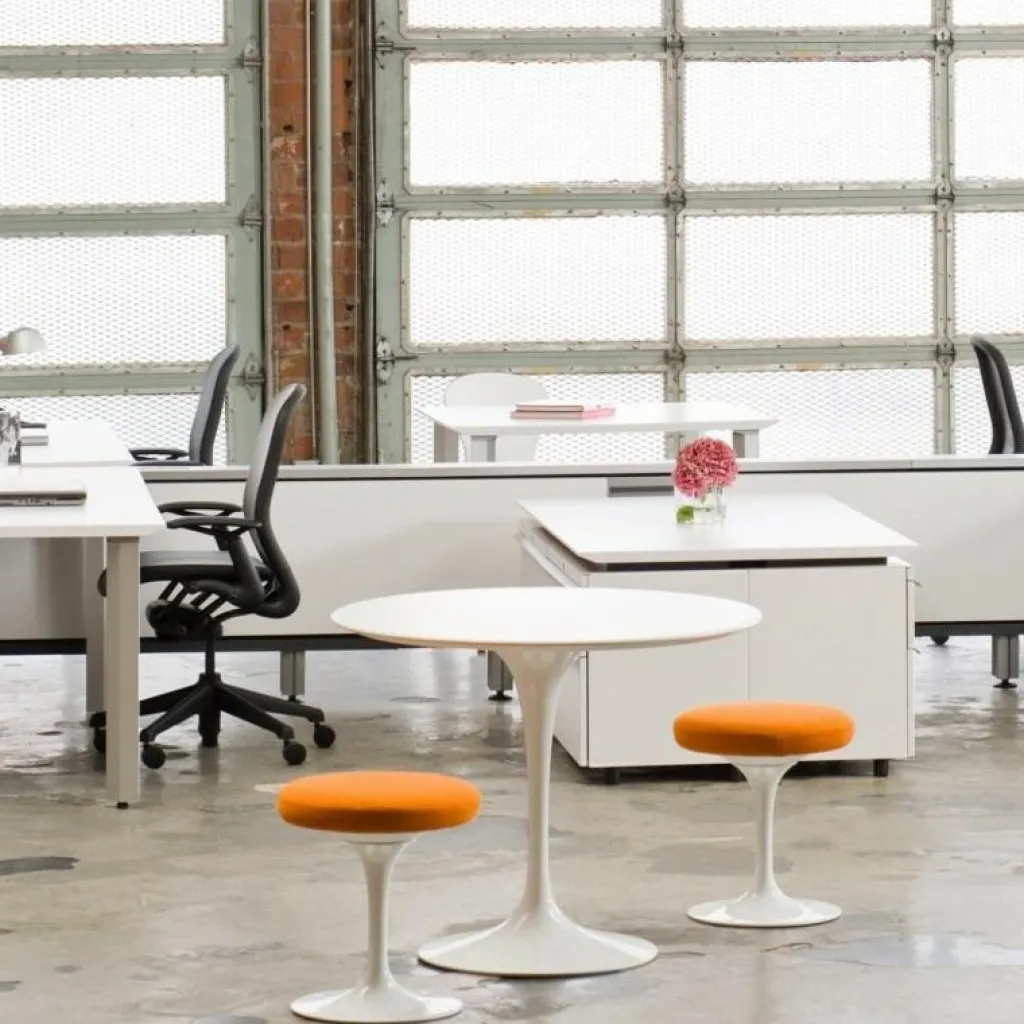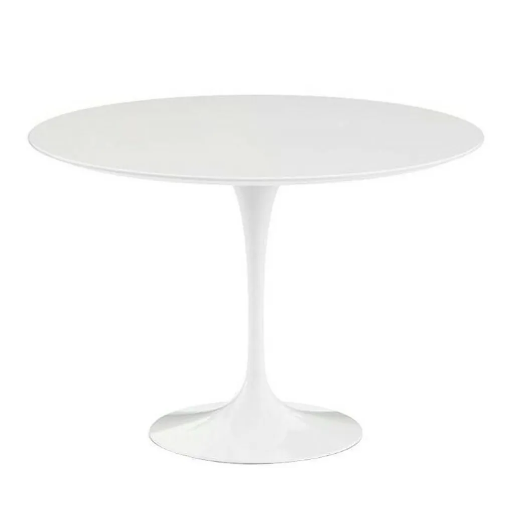 Der schlichte, aber dennoch äußerst elegante und moderne Tisch fügt sich in privatem Ambiente bestens in jeden Einrichtungsstil ein und kann sowohl im Esszimmer als Esstisch oder im Büro als Konferenztisch verwendet werden. Im Büro schafft der kleinste der Saarinen Tische in Kombination mit stilvollen Stühlen, wie z.B. den Tulip Stühlen aus dem Hause Knoll International, sofort eine wohnliche Atmosphäre, in der es sich prima Entspannen oder Brainstormen lässt. Die runde Form des Saarinen Tisches fördert zudem in größeren Runden die Kommunikation.