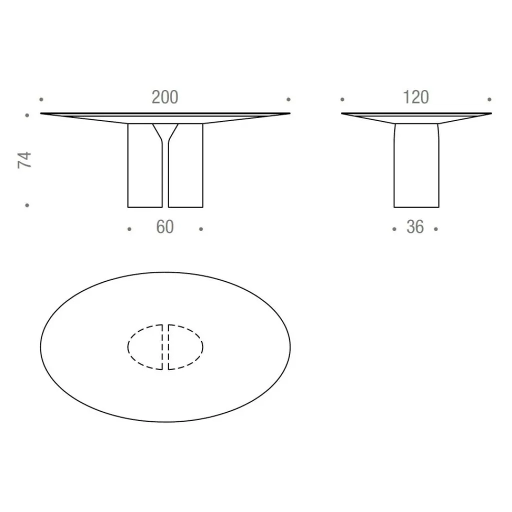 Der ovale Tisch hat eine Länge von 200 cm und eine Breite von 120 cm. Er misst eine Höhe von 74 cm. Perfekt harmoniert das Modell mit dem modernen Einrichtungsstil.