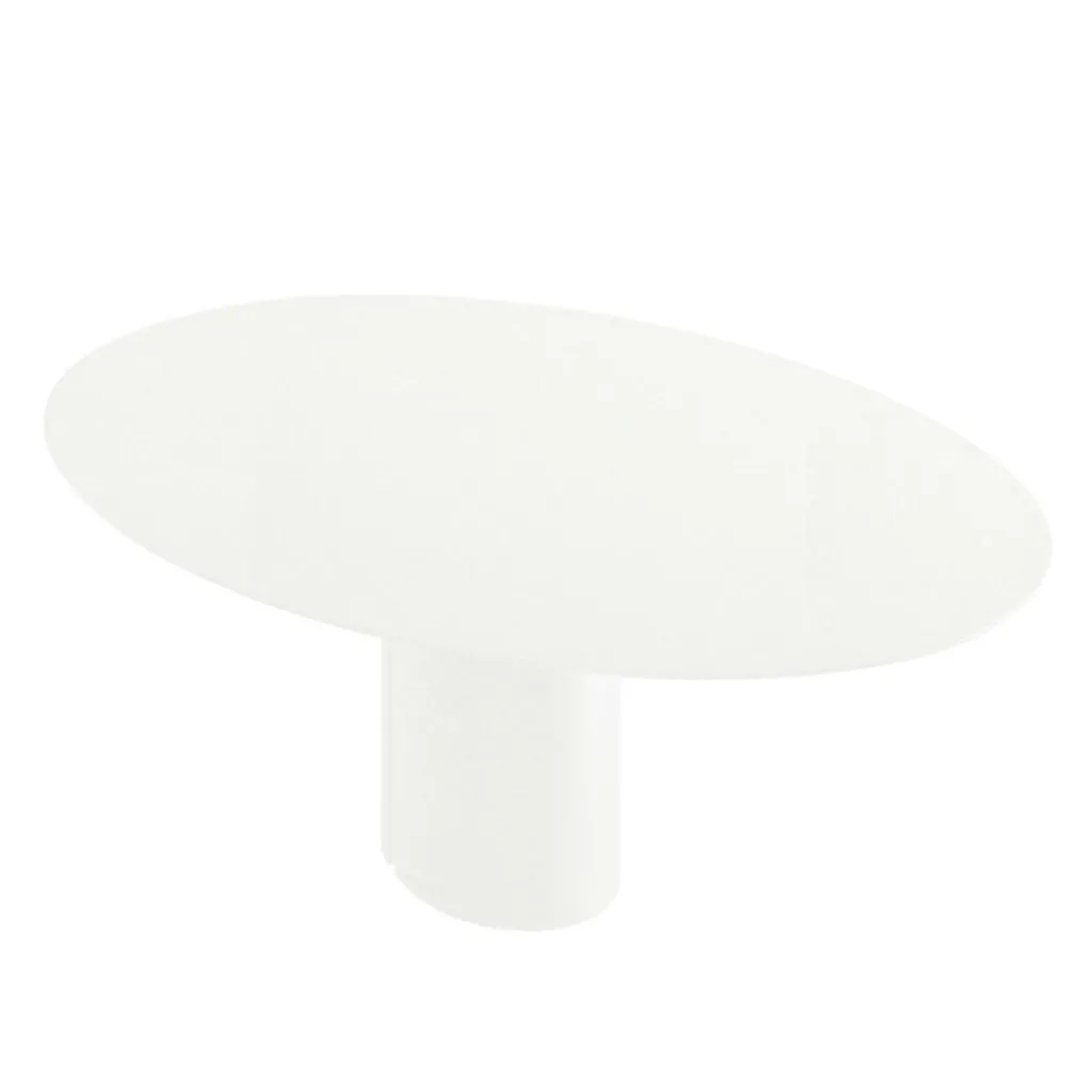 Im NVL Esstisch oval 120x200cm zeigt Nouvel seine Begeisterung für monolithische Linien: Nach außen wirkt es so als ob der Tisch nur aus einem einzigen Material bestehen würde. Tatsächlich verbirgt sich in dem NVL Esstisch oval 120x200cm ein Innengewicht aus Gusseisen. Die nach außen hin sichtbare Schicht besteht aus Hartpolyurethan. Von der Form her erinnert das Modell an einen Trilith: Ähnlich wie das historische Bauelement besteht auch der NVL Esstisch oval 120x200cm aus zwei vertikalen Trägern, auf der ein Deckstein befestigt ist. Durch die lose Verbindung scheint es fast so, als ob die Platte in der Luft schweben würde. Durch sein auffallendes Design wird der Tisch in jedem privaten Wohn- oder Esszimmer sowie in der Gastronomie zum Blickfang.