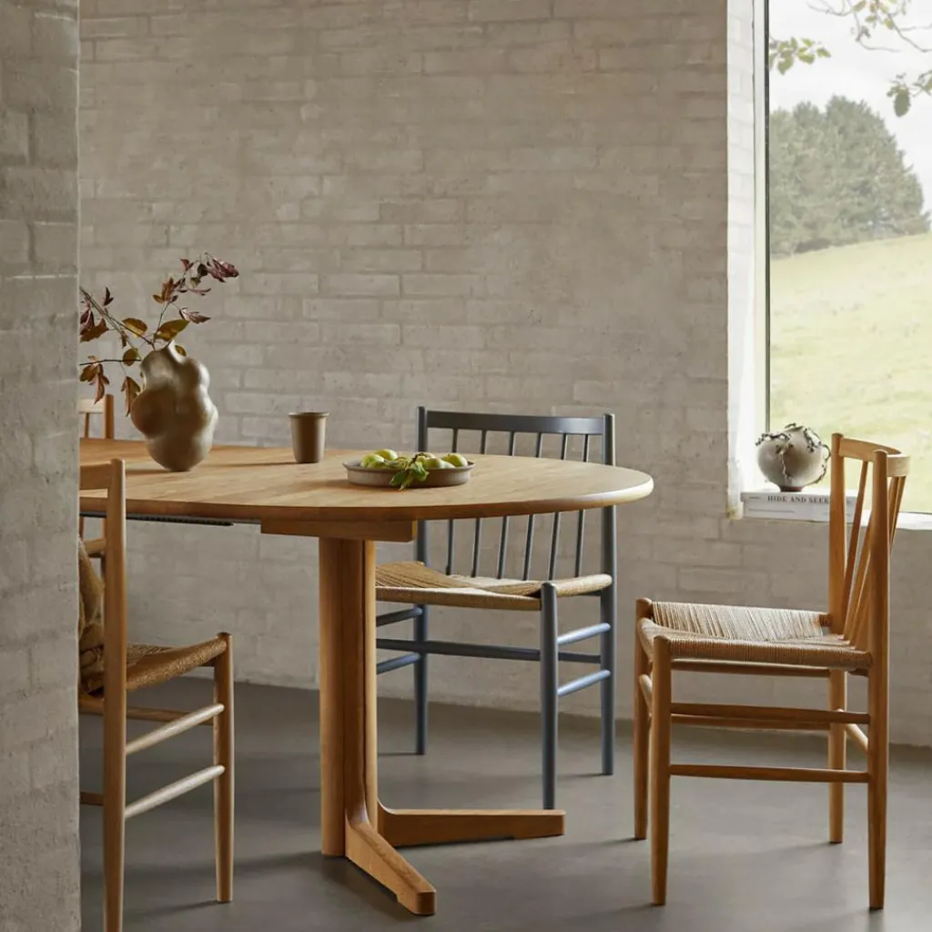 Der C69E Esstisch 220x120cm wurde von Nissen & Gehl für die Marke FDB Møbler entworfen. Die beiden Möbeldesigner kreierten mit dem C69E-Tisch einen in seiner Größe flexiblen Esstisch mit jeder Menge Platz für die ganze Familie.