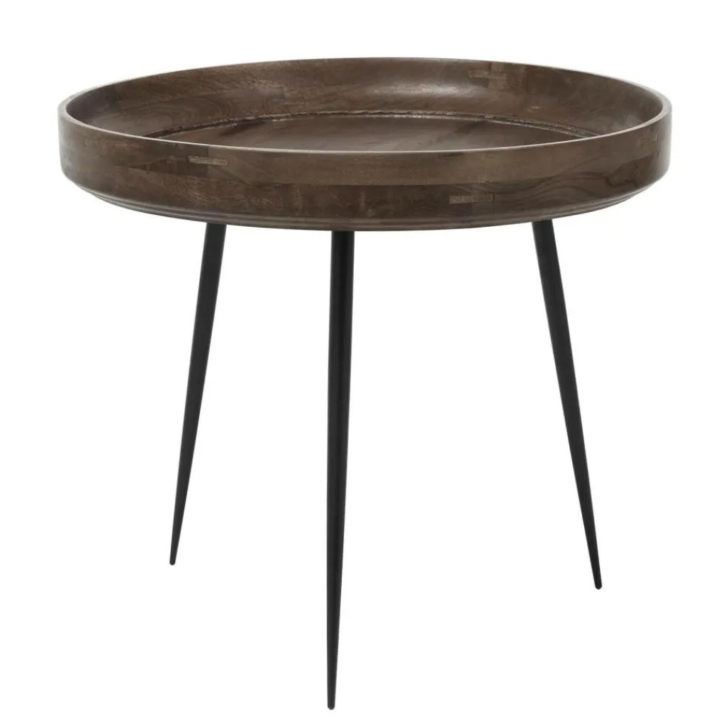 Der Bowl Beistelltisch L wurde von Ayush Kasliwal für die Marke Mater entworfen. Er ist Teil einer Kollektion von Beistelltischen, die ihre Bezeichnung Bowl der Form ihrer schalenförmigen Tischplatte verdankt.