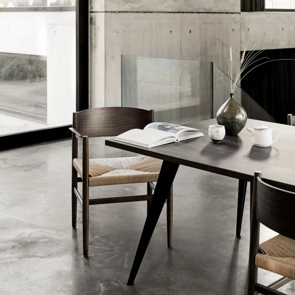 Der Mater Esstisch wurde von Thomas Lykke für die Marke Mater entworfen. Der dänische Designer beweist mit diesem Modell seine Vorliebe für Holz. Hinter seinem Konzept stehen Minimalismus und Funktionalität. Dabei setzt er auf Kontraste.