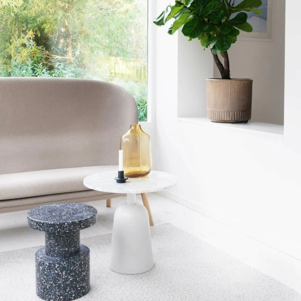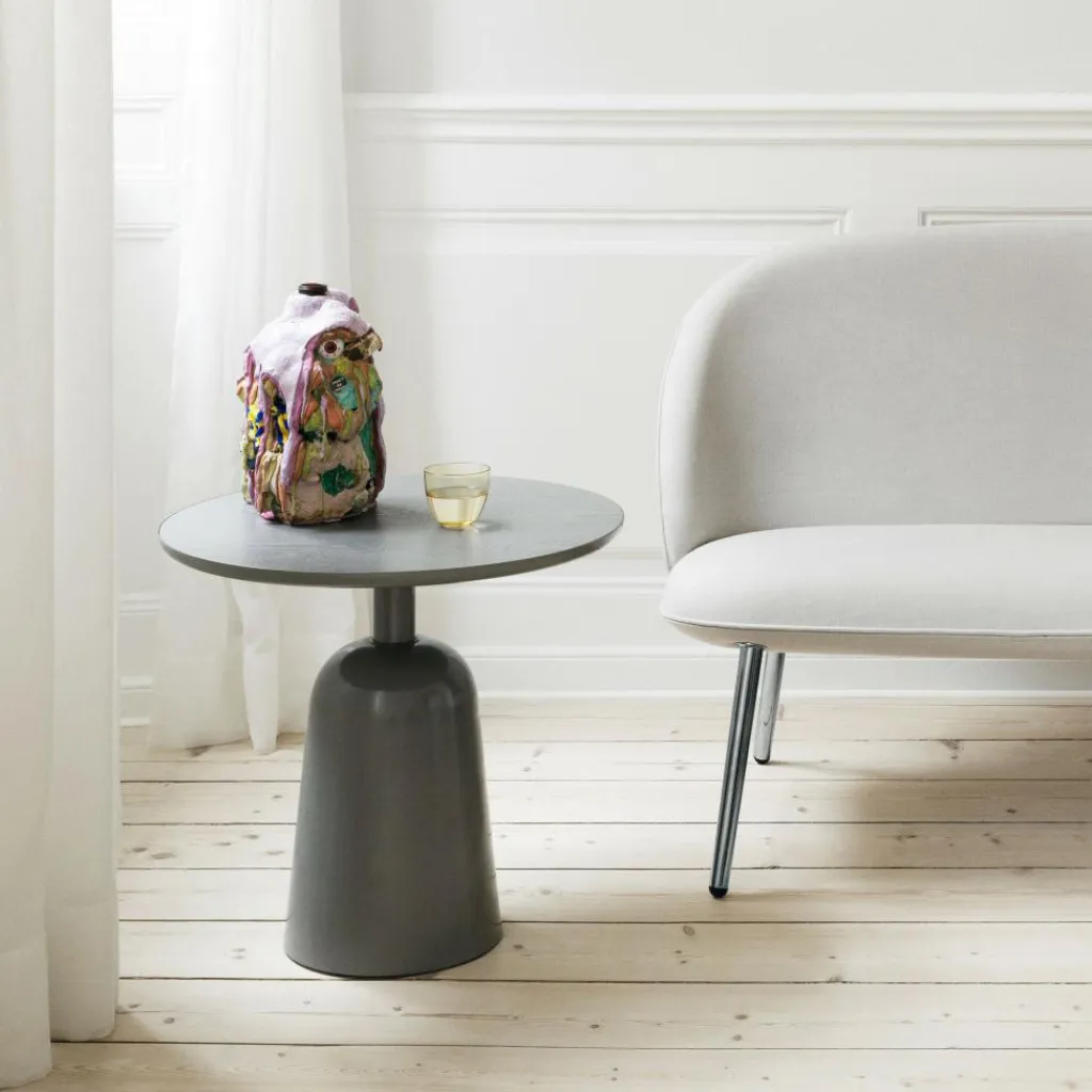 Der Turn Beistelltisch Marmor höhenverstellbar wurde von Simon Legald für die Marke Normannn Copenhagen entworfen. Der Name bezieht sich auf den Schraubmechanismus in der Basis: Dreht man an der Tischplatte, kann man die Höhe des Tisches verstellen. Somit wird das im Jahr 2020 vorgestellte Modell ganz dem Ruf nach flexiblen Möbeln gerecht. Er wird gerne mit moderner Einrichtung kombiniert.