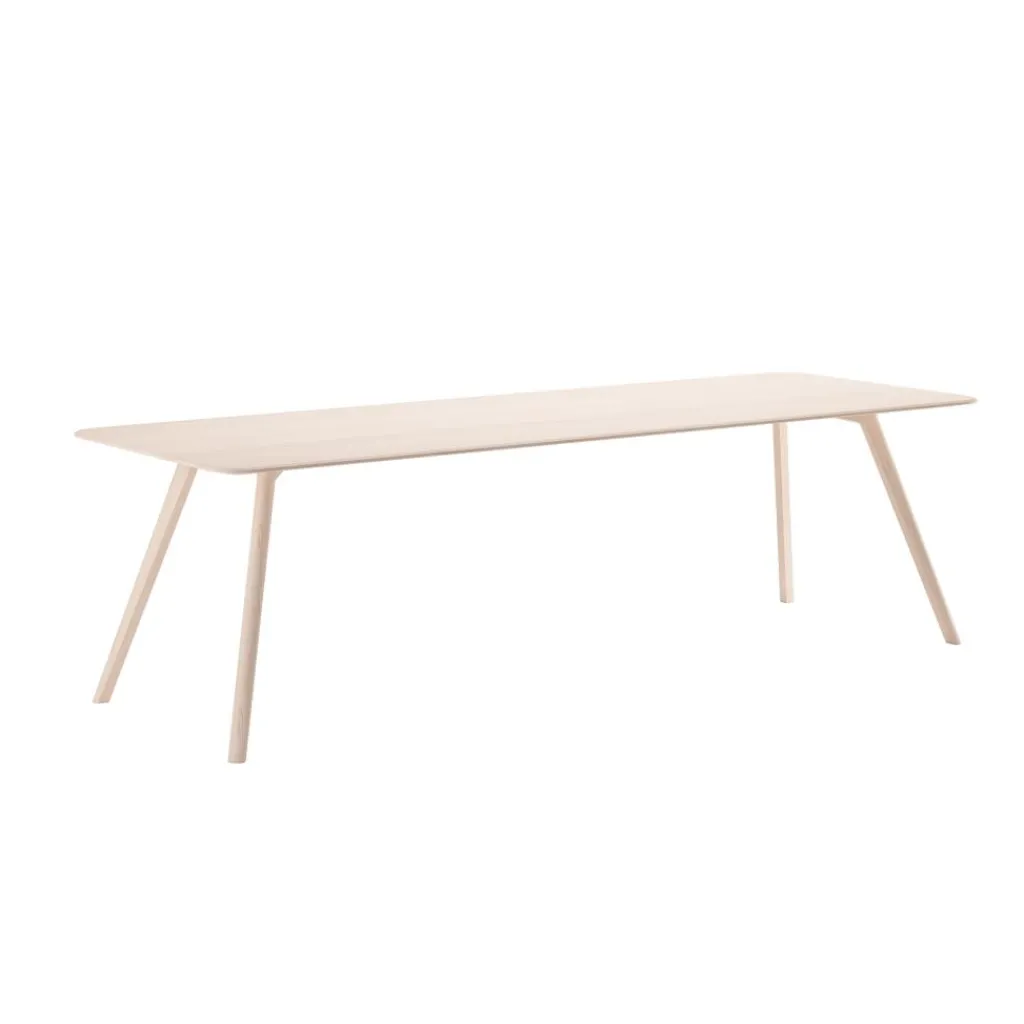 Schon beim ersten Hinsehen verbreitet der Meyer XXLarge Esstisch 260x92x73cm wohnliches Flair. Die weit ausgestellten Tischbeine sind das charakteristische Merkmal des einfachen Tisches. Er steht in massiver Esche oder Eiche zur Auswahl. Die sanft abgerundeten Ecken der Tischplatte ergänzen das harmonische Gesamtbild. Auffallend ist auch, dass die Tischbeine zentral unter der Platte befestigt sind, die an beiden Seiten weit übersteht. Das verleiht dem Meyer XXLarge Esstisch 260x92x73cm eine leichte Silhouette und Beinfreiheit. Der Meyer XXLarge Esstisch 260x92x73cm ist ein richtiges Multitalent: Er kann als Küchen- oder Esstisch ebenso gut verwendet werden wie als Konferenztisch oder Arbeitsplatz im Büro oder Homeoffice.