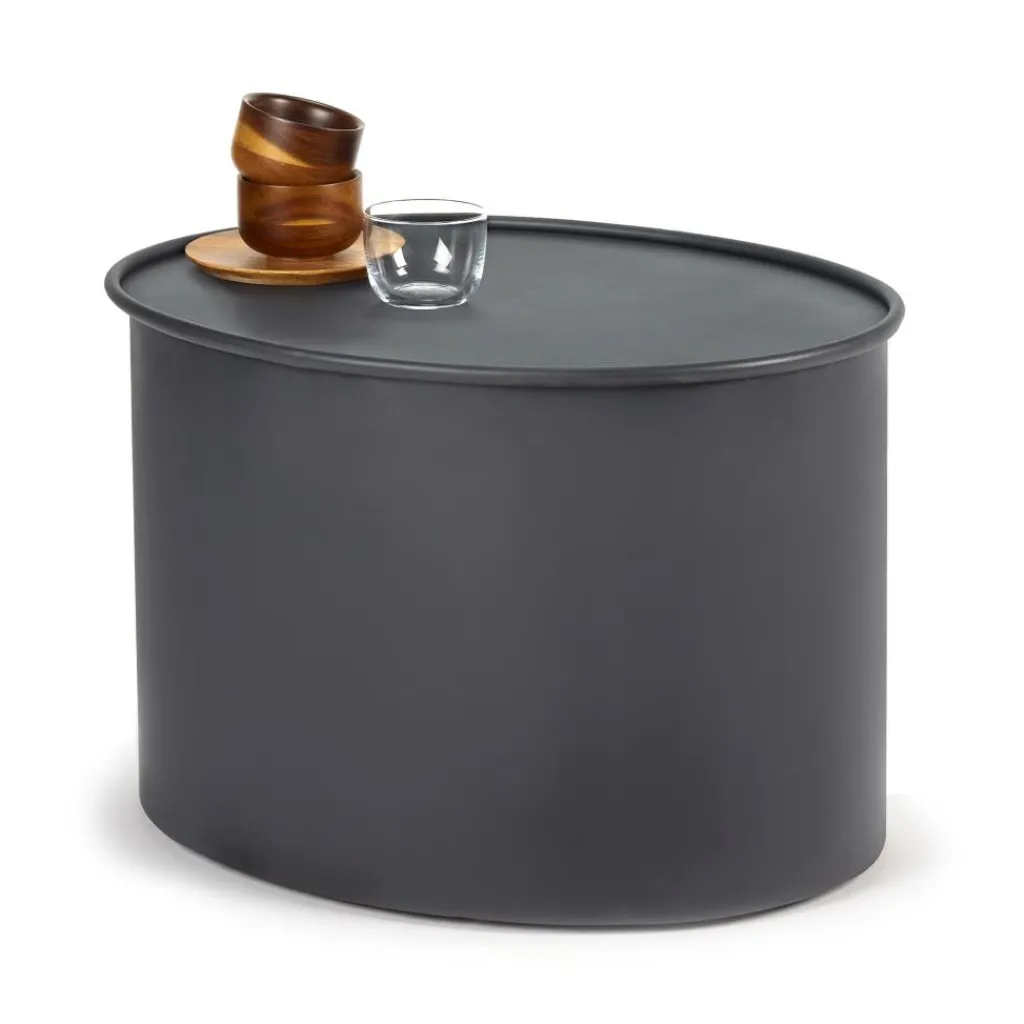 Auf den ersten Blick wirkt der Valerie Marie Beistelltisch wie eine Tonne, die dank ihrer ovalen Form und der matten Oberfläche einen attraktiven Hingucker schafft. So begeistert das formschöne Designstück mit einem skulpturalen Charakter, während sich seine großzügige, gerade Platte mit rundem Rand als praktische Abstellfläche für Drinks oder Snacks eignet. Aus robustem Stahl gefertigt und lackiert, zeichnet sich der Valerie Marie Beistelltisch durch eine langlebige Witterungsbeständigkeit aus. Damit eignet sich der Designtisch ebenso für draußen wie für drinnen. Er kann auf der Terrasse stehen, in einem Atrium oder mitten in der Wiese. Der Valerie Marie Beistelltisch passt ebenso in den Wellnessbereich im Hotel wie in den Wartebereich einer Praxis, den Ausstellungsraum einer Boutique oder einer Galerie. Zusammen mit den passenden Loungesesseln bildet er eine Outdoorlounge auf die Terrasse oder im Wintergarten.