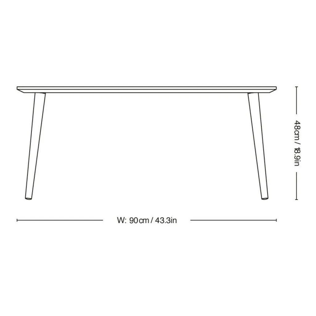 Der In Between SK24 Beistelltisch hat eine Seitenlänge von 90 cm. Er ist 48 cm hoch und steht mit 16,8 kg fest auf dem Boden. Er ist in geölten oder lackierten Ausführungen erhältlich. Passend dazu gibt es in der In-Between-Serie von &Tradition weitere Beistelltische, Esstische und Stühle.