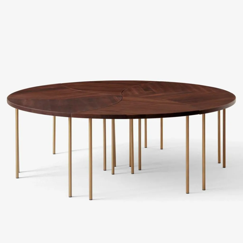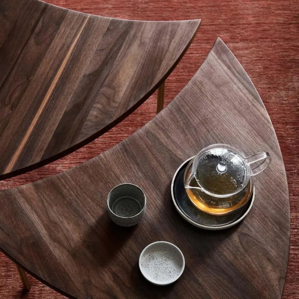 Das Design des Tisches stammt aus der Feder des dänischen Designerduos Hvidt & Mølgaard und obwohl dieser schon in den 50er Jahren entworfen wurde, begeistert der Tisch bis heute mit seinem zeitlosen Design. Das Zusammenspiel von Materialien und Form unterstreichen die natürliche Note, die im skandinavischen Design so typisch ist. Die Tischplatte besteht aus hochwertigem Massivholz; im Kontrast dazu stehen die Beine, die aus Messing gefertigt wurden. Insbesondere die Form des Tisches sticht ins Auge. Die Wellenform der Tischplatte macht diesen zu einem besonderen Designelement, das sich leicht von einem herkömmlichen Beistelltisch abhebt. Der Clou: Sie können 6 dieser Tische zu einem großen runden Tisch kombinieren. So ist der Pinwheel HM7 Beistelltisch ein hervorragend funktionales Möbelstück, das im eigenen Wohnzimmer perfekt zur Geltung kommt, aber auch in Hotels, Restaurants oder Cafés eingesetzt werden kann.