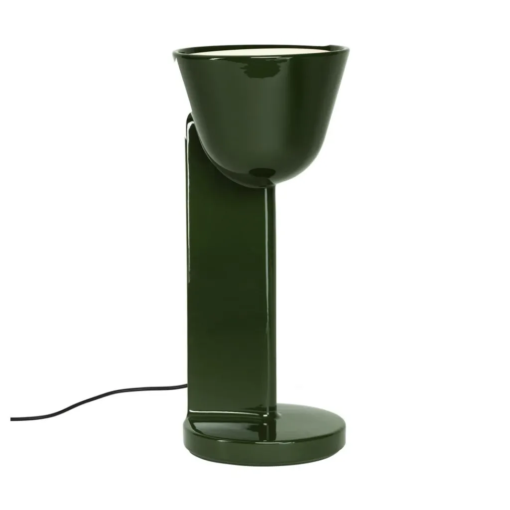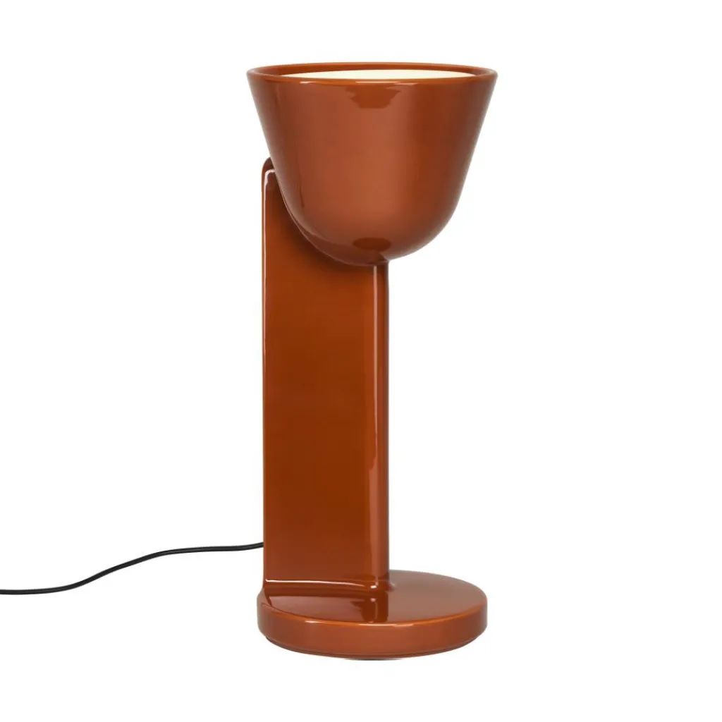 Die Gestalt der Céramique Up Tischleuchte setzt sich aus einer runden Fußscheibe, einem rechteckig geschnittenen Stiel und einem schalenförmigen Leuchtenkopf zusammen. Dabei sitzt der Schirm, der senkrecht nach oben weist, mittig über dem Fuß, während der Leuchtenstiel an dessen Rand verschoben ist. Zusammen mit der glänzend lackierten Keramik-Oberfläche macht diese Form die Céramique Up Tischleuchte zu einem attraktiven Blickfang. Das Leuchtmittel steckt hinter einem Polycarbonat-Diffusor, der einen angenehm sanften Lichtkegel zur Decke hin wirft. So schafft die Céramique Up Tischleuchte eine harmonische Lichtstimmung, die sich ebenso gut in einer Bar, in einer Hotellounge oder einer Boutique macht wie im Wohnzimmer daheim.