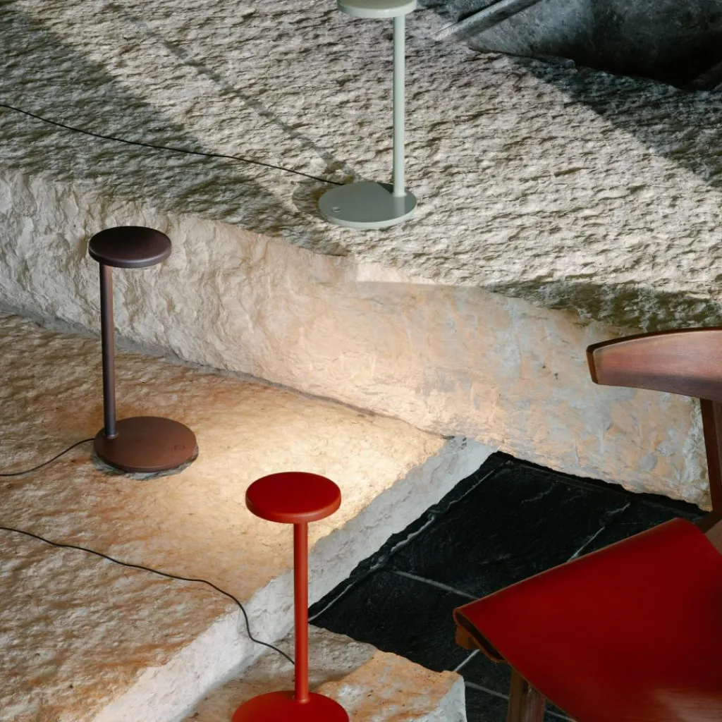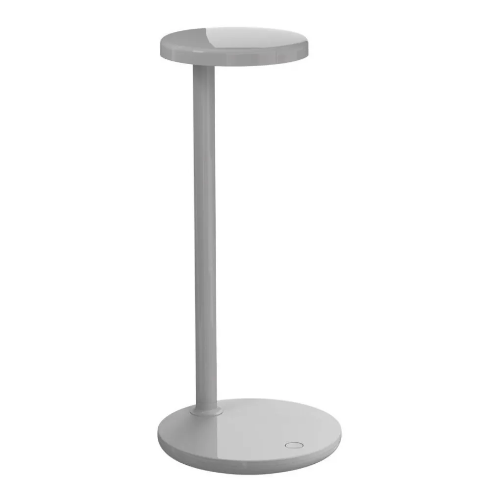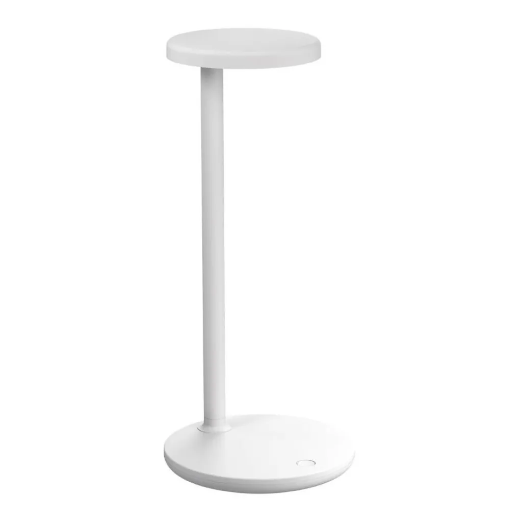 Die Oblique LED Tischleuchte wurde von Vincent van Duysen für die Marke Flos entworfen. Sie zeigt auf beeindruckende Weise wie aus schlichten geometrischen Formen auffallende Leuchten entstehen. Im Prinzip reduziert sich das Design der Oblique LED Tischleuchte auf zwei runde Scheiben, die versetzt zueinander auf einem Rohr montiert sind.