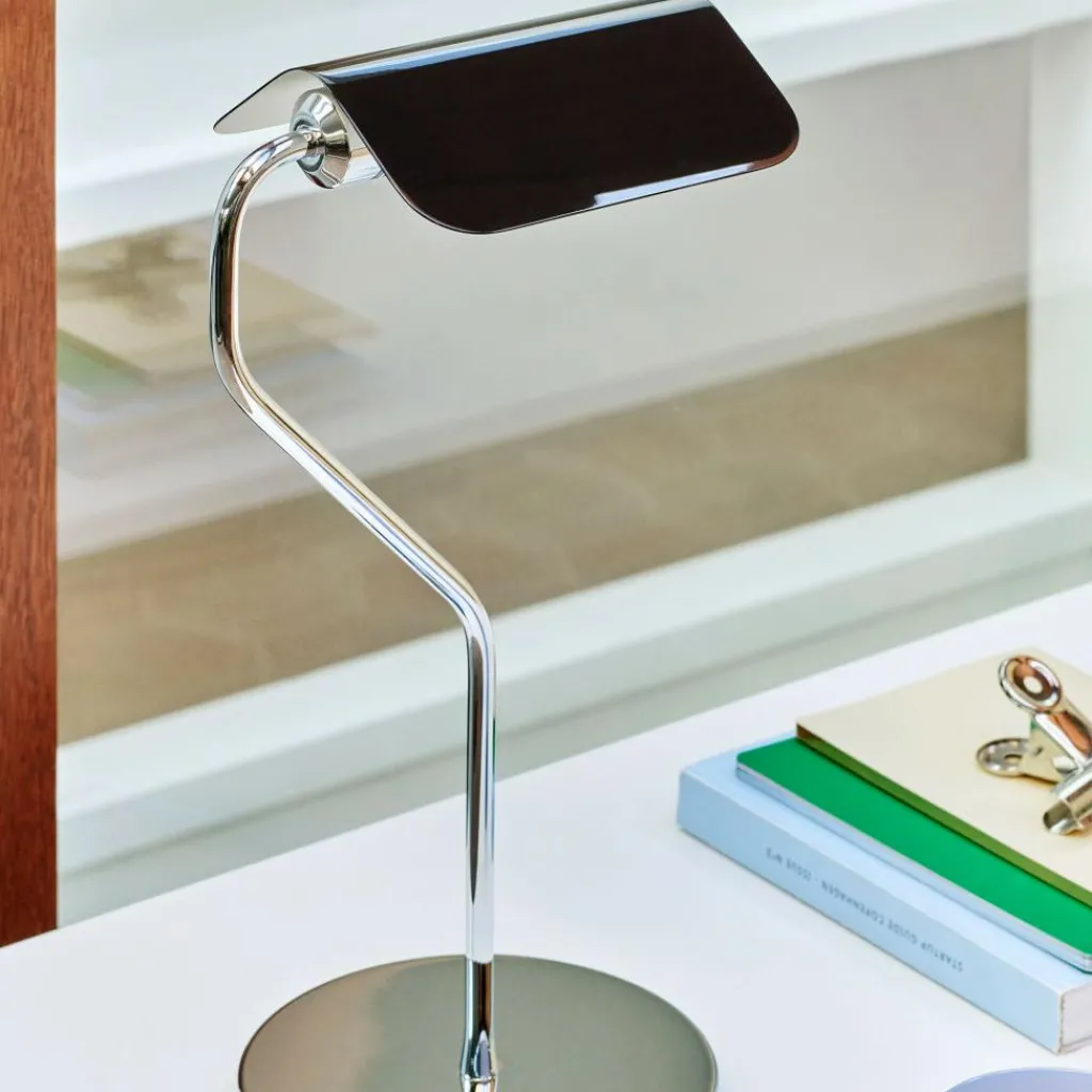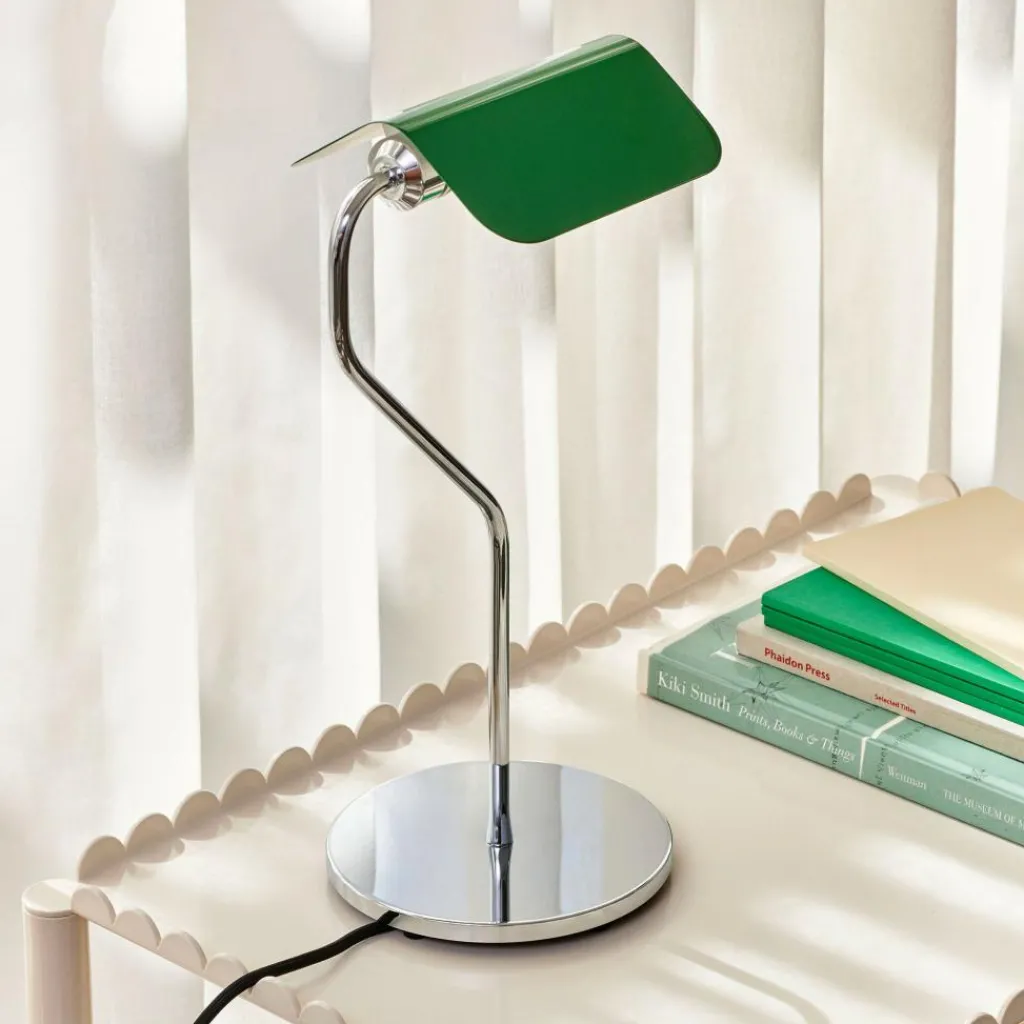Die Apex Tischleuchte wurde von John Tree für die Marke HAY entworfen. Der britische Designer fand seine Inspiration in Banker-Leuchten, die aus der Zeit des Art déco stammen. Er hat unter anderem den schwenkbaren Leuchtenschirm von den Klassikern übernommen und das Flair der 1920er-Jahre in das moderne Zeitalter transportiert.