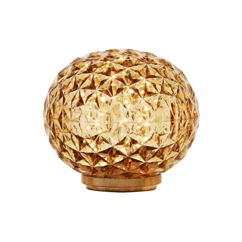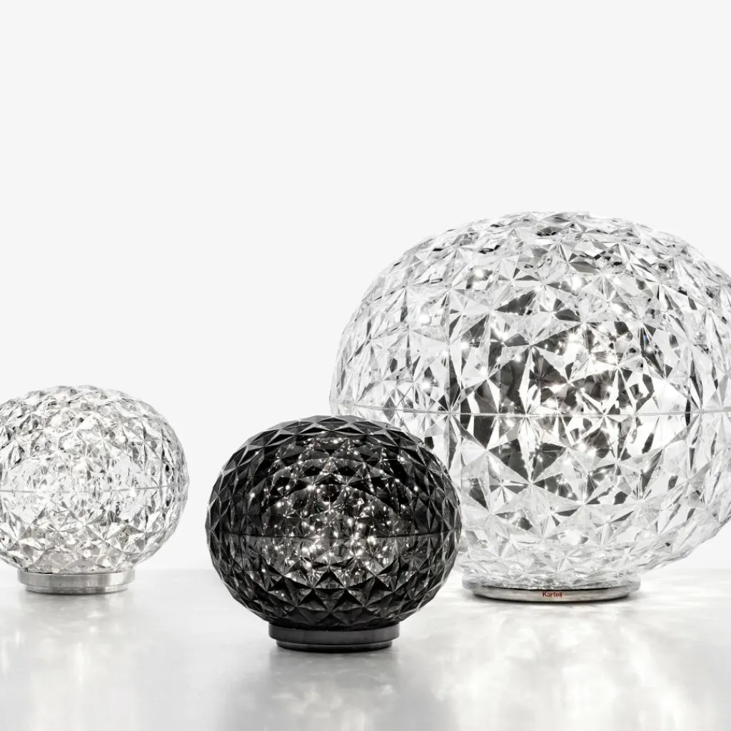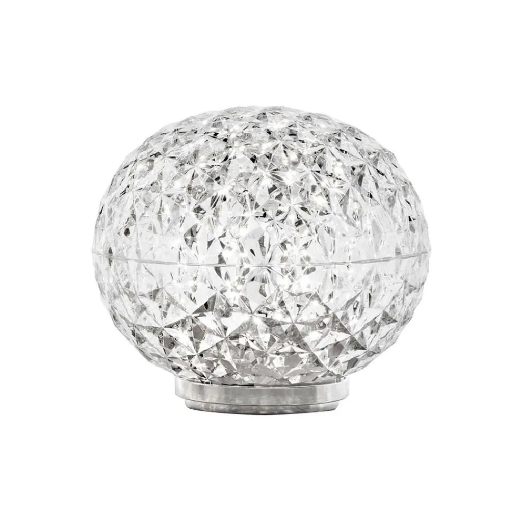 Die Mini Planet LED Tischleuchte wurde von Tokujin Yoshioka für die Marke Kartell entworfen. Sie gehört zu einer Serie von dekorativen Leuchten, die eine Kugelform haben und dank ihrer stark facettierten Oberfläche ein magisches Leuchten erzeugen. Auf diese Eigenschaft spielt auch der Name der Leuchte an.
