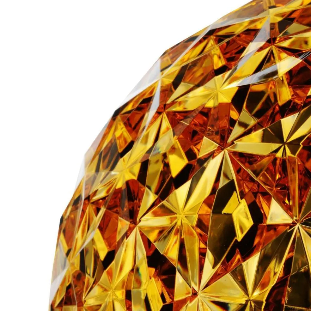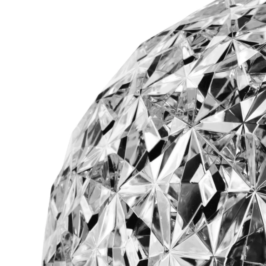 Diese Leuchte wird aus unterschiedlich dickem Polycarbonat hergestellt. Durch das Material spielen die Leuchten mit dem physikalischen Linseneffekt und es entsteht ein zauberhaftes Glitzern. Je nachdem, von wo aus Sie sie betrachten, verändert sich das Licht ständig und erscheint in einem tollen Kaleidoskop-Look.