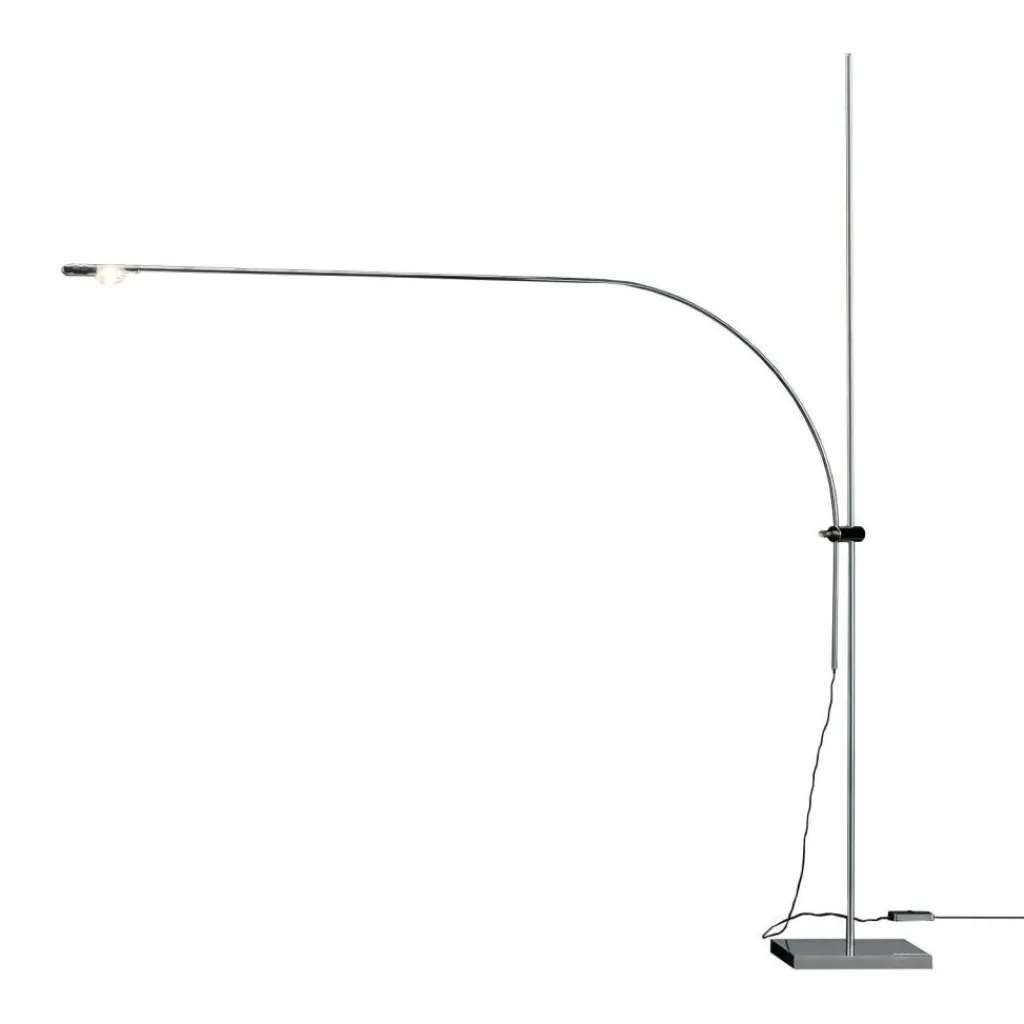 Der quadratische Fuß der Uau T LED Tischleuchte wird wie der senkrechte Stab, der daraus entspringt, aus Nickel gefertigt. Auf dem Stab ist eine Halterung befestigt, die einen weiteren Stab trägt. Er beschreibt einen harmonischen Bogen und führt dann waagrecht zur Lichtquelle. Diese ist in einer austauschbaren Glaslinse integriert. Aus dem Leuchtmittel dringt das Licht in einem breiten Winkel nach unten. Sie zeichnet auf dem Tisch einen deutlich erkennbaren Lichtkreis. Das Modell spendet warmweißes Licht.