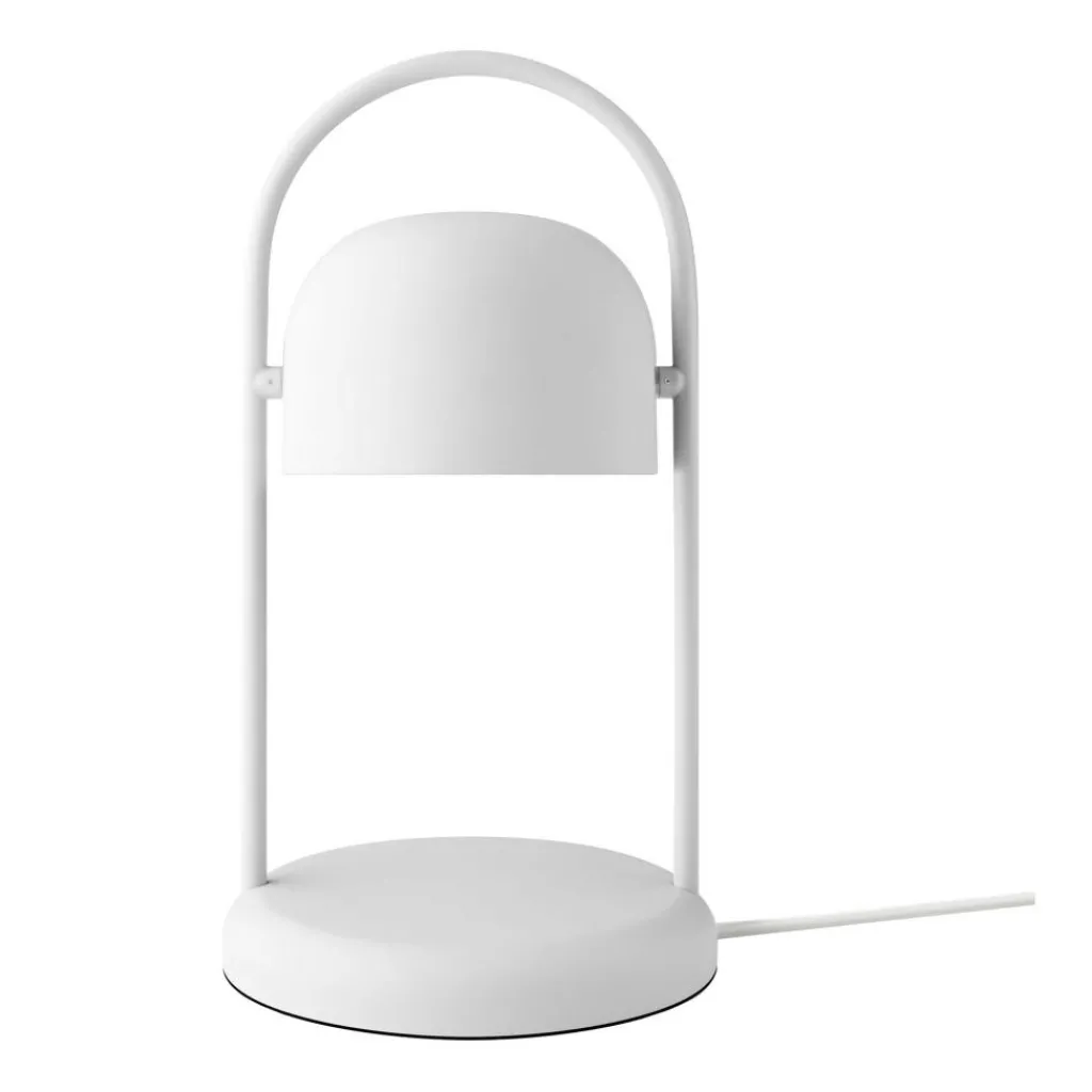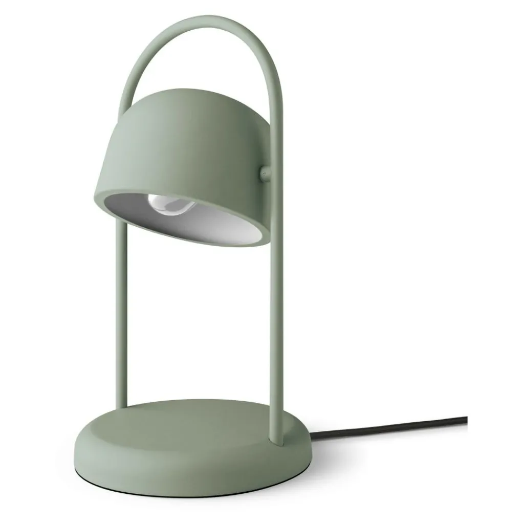 Die kompakte Quay Tischleuchte steht auf einem schmalen, runden Sockel. Daraus erhebt sich ein Gestell, das sich als Bogen über den Leuchtenschirm spannt. Er ist wie eine Glocke geformt und kann innerhalb des Gestells nach Beliebten geschwenkt werden. Das macht die stilvolle Leuchte zum praktischen Utensil auf jedem Arbeitsplatz. Sie kann jedoch auch auf dem Nachttisch im Schlafzimmer, auf der Fensterbank oder einem Regal eingesetzt werden. Die in verschiedenen Farben erhältliche Quay Tischleuchte wird aus pulverbeschichtetem Stahl hergestellt.