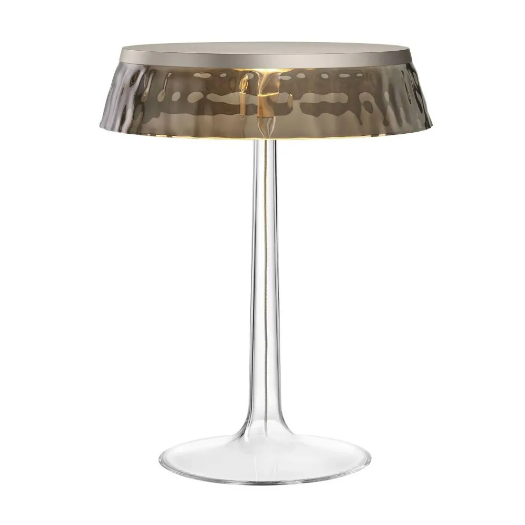 Die Tischleuchte hat ein transparentes Gestell, um die bestmögliche Anpassung an Ihr Ambiente zu ermöglichen. Sie können dazu Schirme in verschiedenen Farben wählen, sie sind auch separat erhältlich. Dadurch ergeben sich viele Variationsmöglichkeiten. Entweder wählen Sie die transparente Lösung oder Sie setzen einen Farbakzent mit dem Lampenschirm Ihrer Wahl.