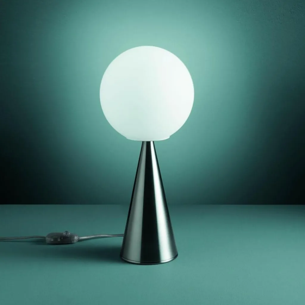 Die Bilia Tischleuchte wurde vom Designer Gio Ponti für den Hersteller Fontana Arte entworfen. Aus dem Entwurf entstand eine Tischleuchte in schlichtem Design, die sich optisch in jedes Raumkonzept integrieren lässt.