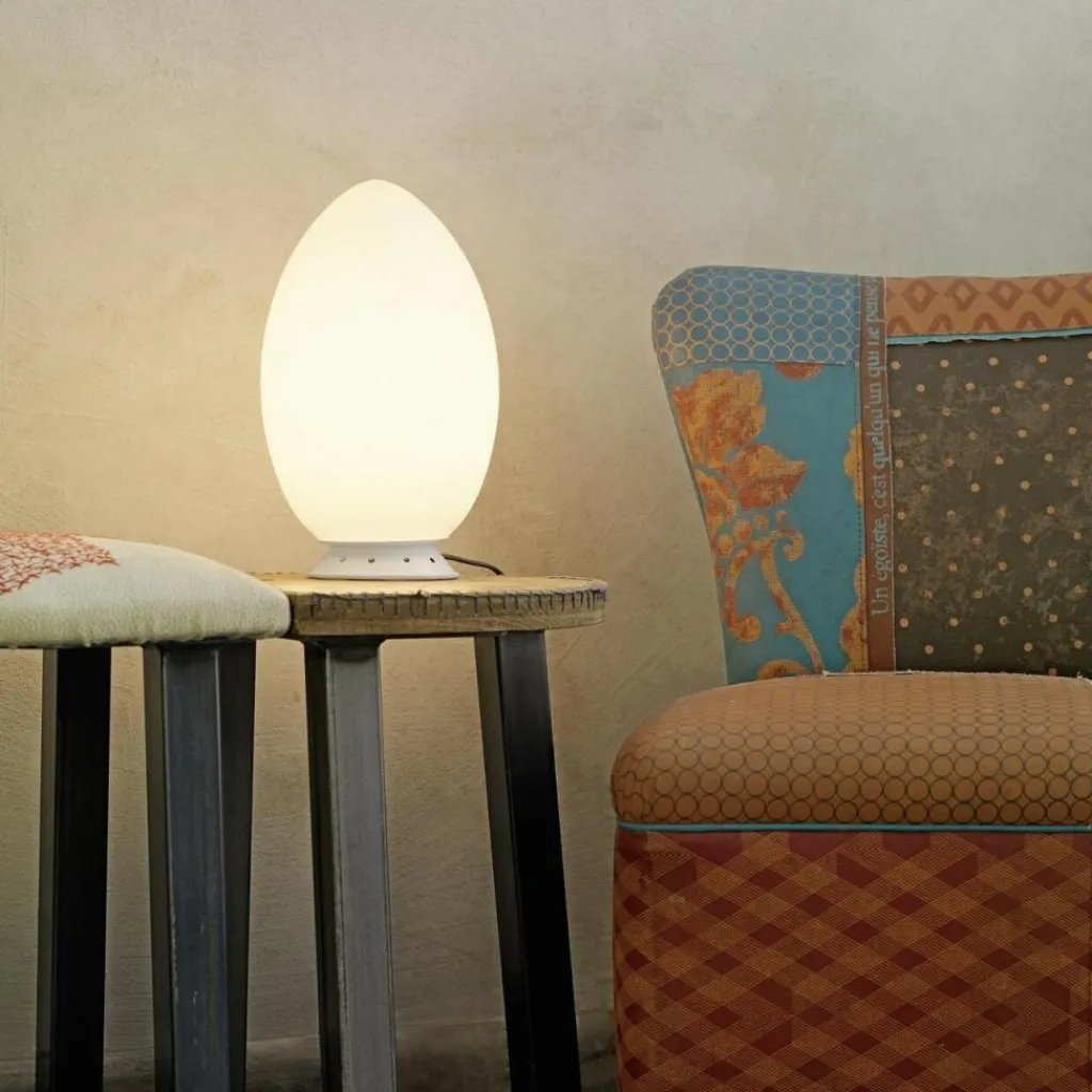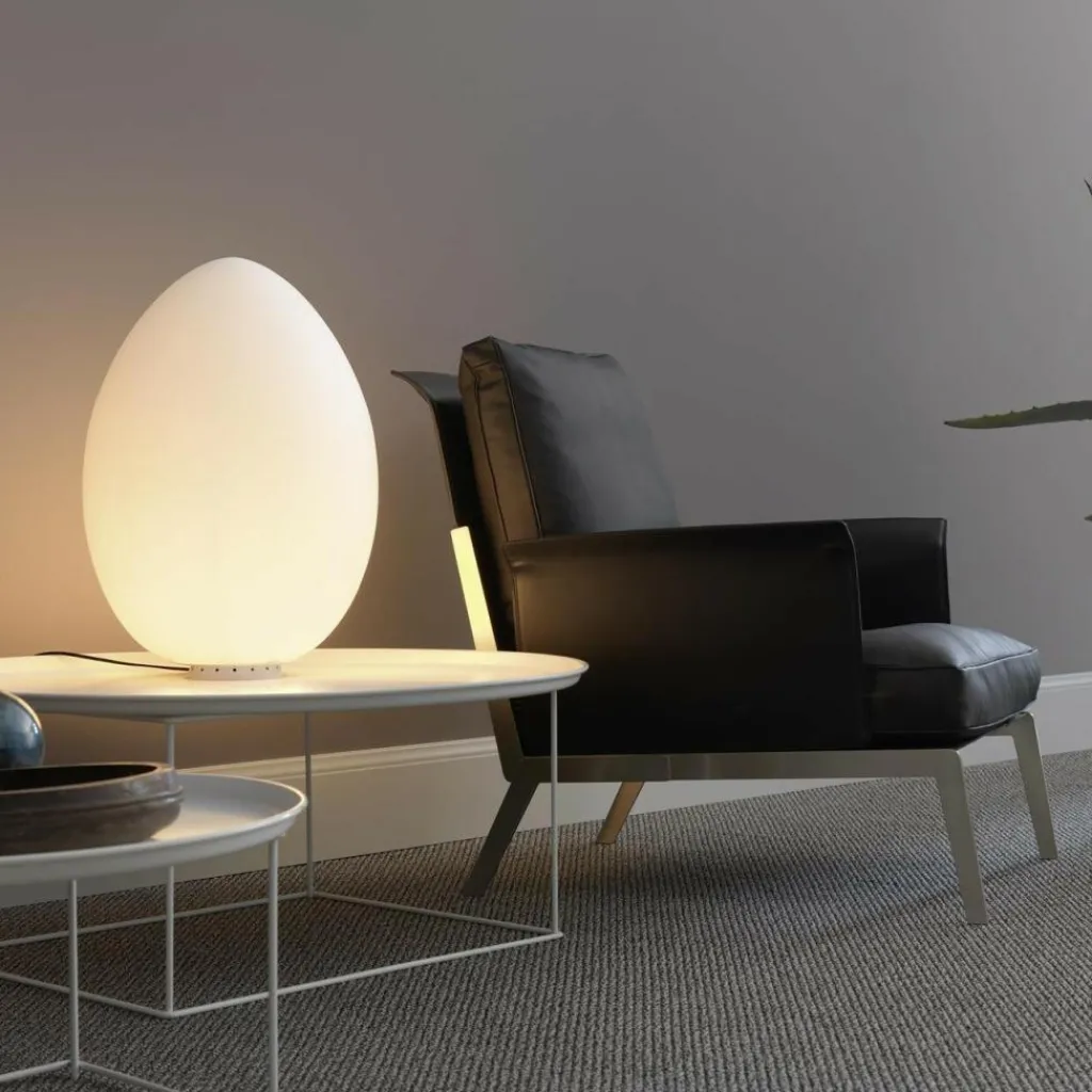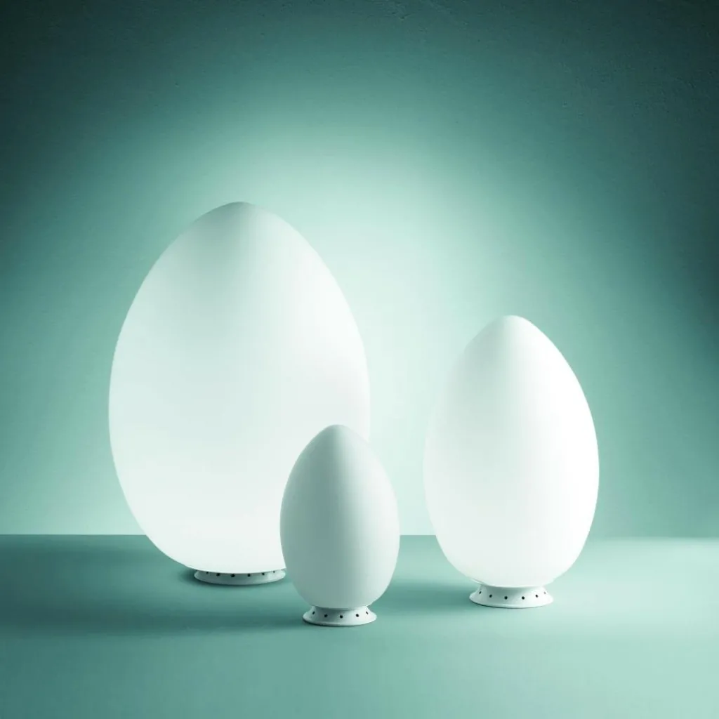 Die Uovo 2646 Tischleuchte wurde vom Design-Kollektiv Archivio Storico für den italienischen Hersteller Fontana Arte entworfen. Neue Formen, Mut zu Innovation, der Bruch mit etablierten Standards und radikale Denkweisen haben die Design-Welt Mitte des 20. Jahrhunderts verändert. In dieser Zeit, um 1972, entstand auch die Uovo 2646 Tischleuchte. Als Ei ital. „uovo“ erobert die schlichte Lampe mit ihrer markanten Form Wohnzimmer, Empfangsräume und andere halböffentliche Flächen. Den Erfolg brachte die stilvolle und warme Beleuchtung im Zusammenspiel mit der symmetrisch-asymmetrischen Interpretation eines eiförmigen Diffusors.