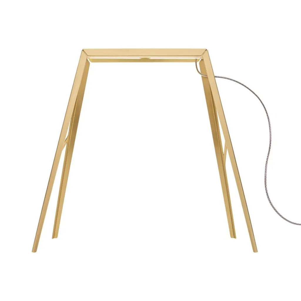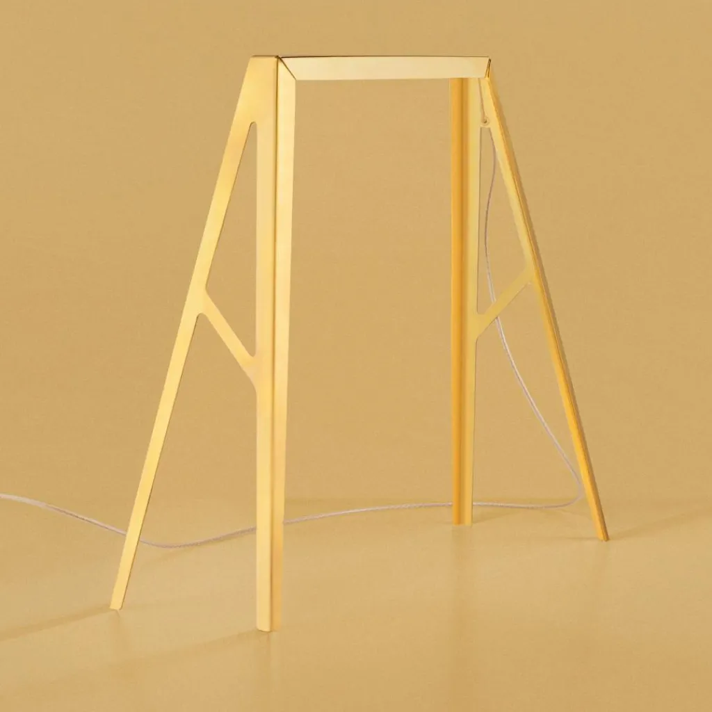 Es gibt die Bridge 2 LED Tischleuchte in einer Ausführung aus Stahl und in einer Version aus Messing. Bei der Variante aus Messing wird die Oberfläche lackiert, um Verfärbungen vorzubeugen. Beide Materialien werden mit einem Laser exakt in Form geschnitten. Festen Stand sichern der Bridge 2 LED Tischleuchte zwei v-förmige Füße. Darüber liegt eine schlichte Querverbindung. An der Unterseite sind vier Leuchtmittel befestigt, die das Licht nach unten abstrahlen. Ebenfalls im oberen Teil des Gestells liegt ein Lichtsensor. Damit kann die Bridge 2 LED Tischleuchte berührungslos bedient werden. Die Bridge 2 LED Tischleuchte passt auf das Fensterbrett, auf ein Regal oder auf einen Tisch. Die im Jahr 2022 vorgestellte Leuchte ist in der Dauerausstellung der Triennale in Mailand ausgestellt.