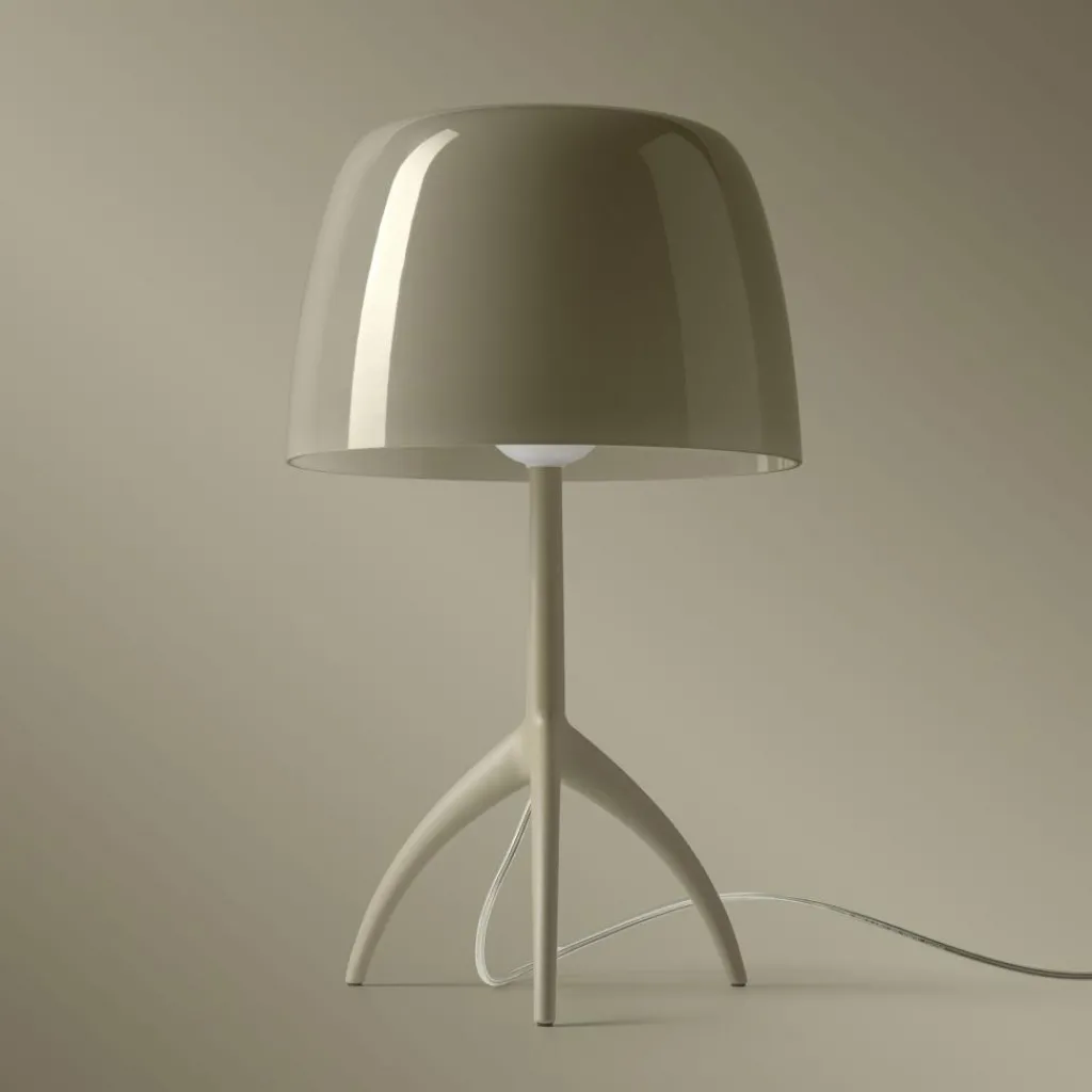 Die Lumiere Nuances Grande Tischleuchte wurde von Rodolfo Dordoni für die Marke Foscarini entworfen. Sie ist Teil der Leuchtenkollektion Foscarini Lumiere, deren Design sich seit 1990 bewährt. Die neue Nuances-Serie überrascht nicht nur mit neuen Farben, sondern mit einer verbesserten Beleuchtungseinheit.