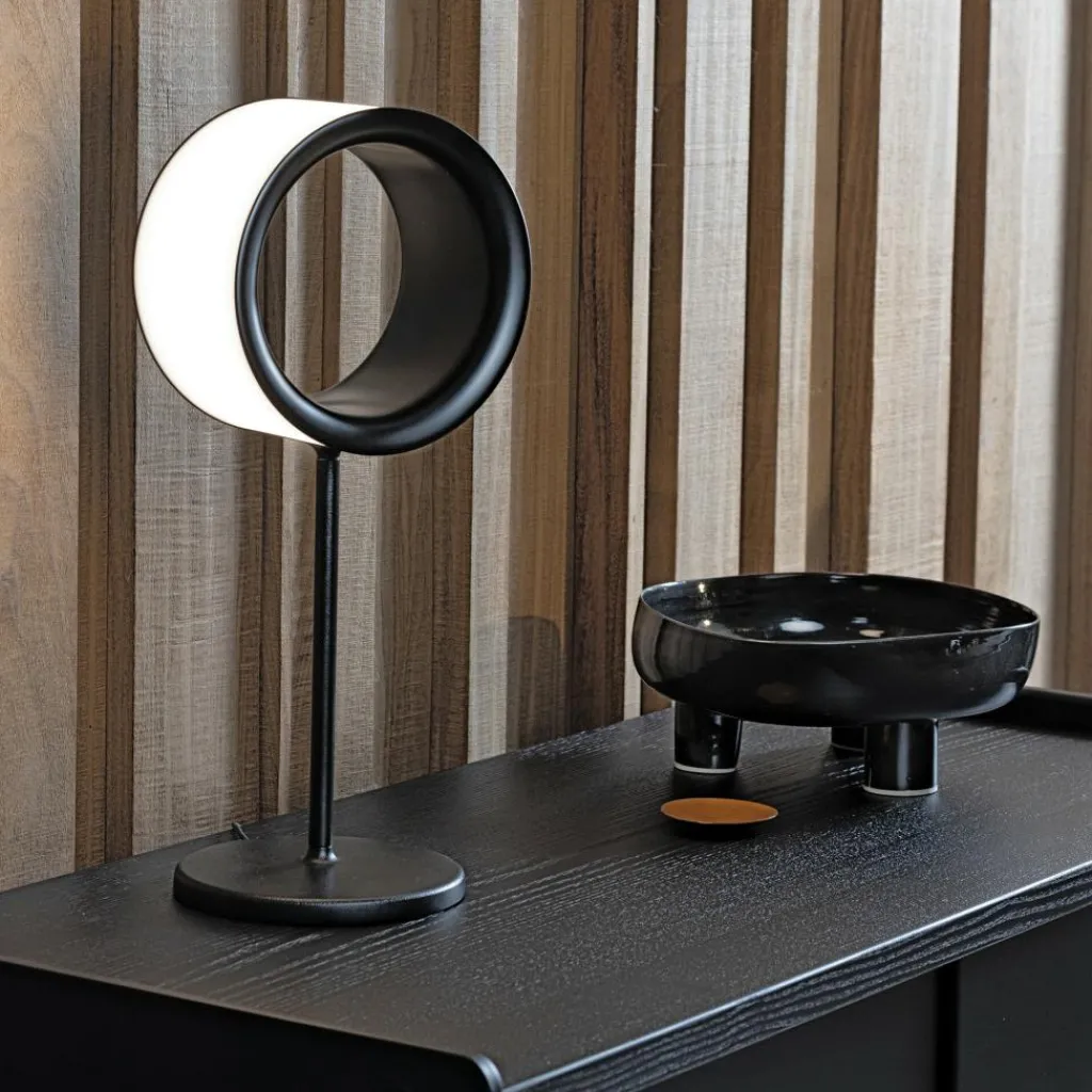 Die Lost LED Tischleuchte wurde von Bogliato Traverso für die Marke Magis entworfen. Sie ist Teil einer extravaganten Leuchtenkollektion, deren formales Merkmal ein Ring ist. Das italienische Designerduo reduziert damit die klassische Leuchtenform auf eine zentrale Leere und schaffen damit eine puristische Leuchtenserie mit einem ebenso skulpturalen wie poetischen Charakter.