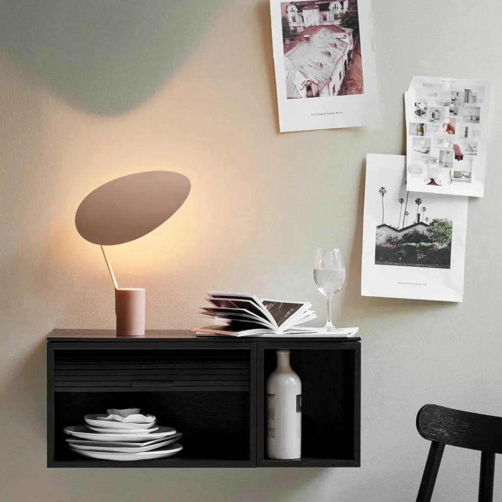 Die aus pulverbeschichtetem Stahl gefertigte Ombre Tischleuchte gibt es in verschiedenen Farben. Als Basis dient ein Zylinder, in dem das Leuchtmittel enthalten ist. Seitlich entspringt ein schräg angesetztes Rohr, das zu einer runden, leicht gebogenen Blende führt. Sie lässt sich individuell verstellen und fängt den Lichtstrahl ein. Je nach Winkel entstehen interessante Muster an der Wand und an der Decke. Der Schalter und Dimmer ist im Kabel integriert. Egal ob sie auf einer Kommode, am Schreibtisch oder am Nachttisch im Schlafzimmer aufgestellt wird, die Ombre Tischleuchte zieht alle Blicke auf sich.