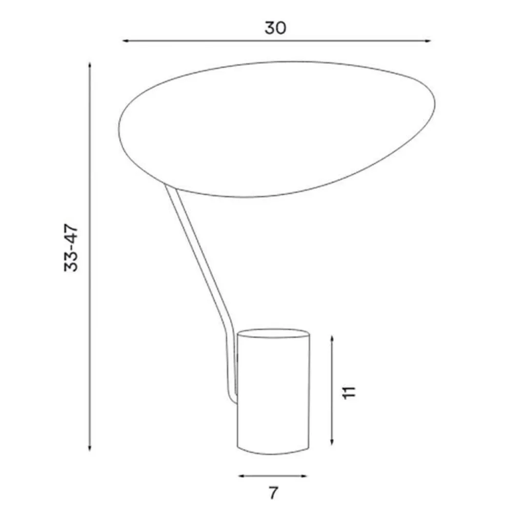 Die Ombre Tischleuchte ist 1,6 kg schwer. Sie ist 30 cm breit und 33 cm hoch. Der Fuß hat einen Durchmesser von 7 cm. Die Leuchte wird mit einem 200 cm langen Kabel mit dem Stromkreis verbunden. Die Ombre Tischleuchte braucht ein Leuchtmittel mit einer GU10-Fassung, das unter Zubehör mitbestellt werden kann.
