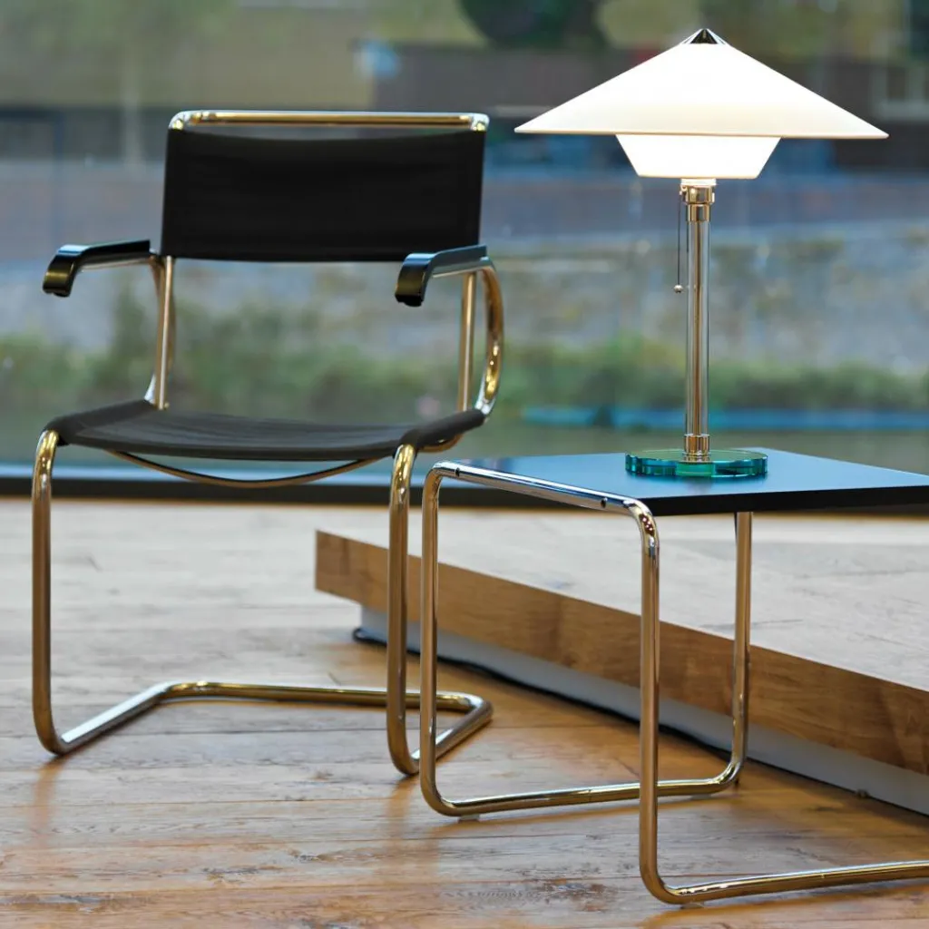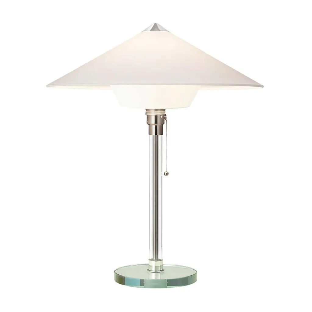 Die Wagenfeld WG 28 Tischleuchte wurde von Wilhelm Wagenfeld für die Marke Tecnolumen entworfen. Sie ist Teil einer Kollektion, die die pionierhaften Leuchtenmodelle des deutschen Produktdesigners aus der Bauhausschule an die heutigen Sicherheitsstandards angepasst hat.