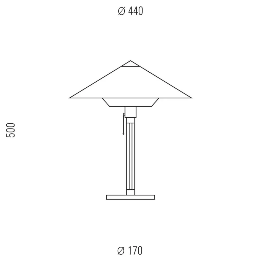 Die Wagenfeld WG 28 Tischleuchte hat eine Höhe von 50cm. Der Durchmesser ihres Schirmes beträgt 44cm, jener des Fußes 17cm. Ihr Kabel hat eine Länge von 250cm. Die Leuchte wiegt 2,2kg und benötigt ein Leuchtmittel mit E27-Fassung. Neben der Wagenfeld WG 28 Tischleuchte stehen weitere Modelle in unterschiedlichen Formen und Größen zur Auswahl. Jede Leuchte ist fortlaufend nummeriert und trägt das Signet TECNOLUMEN.