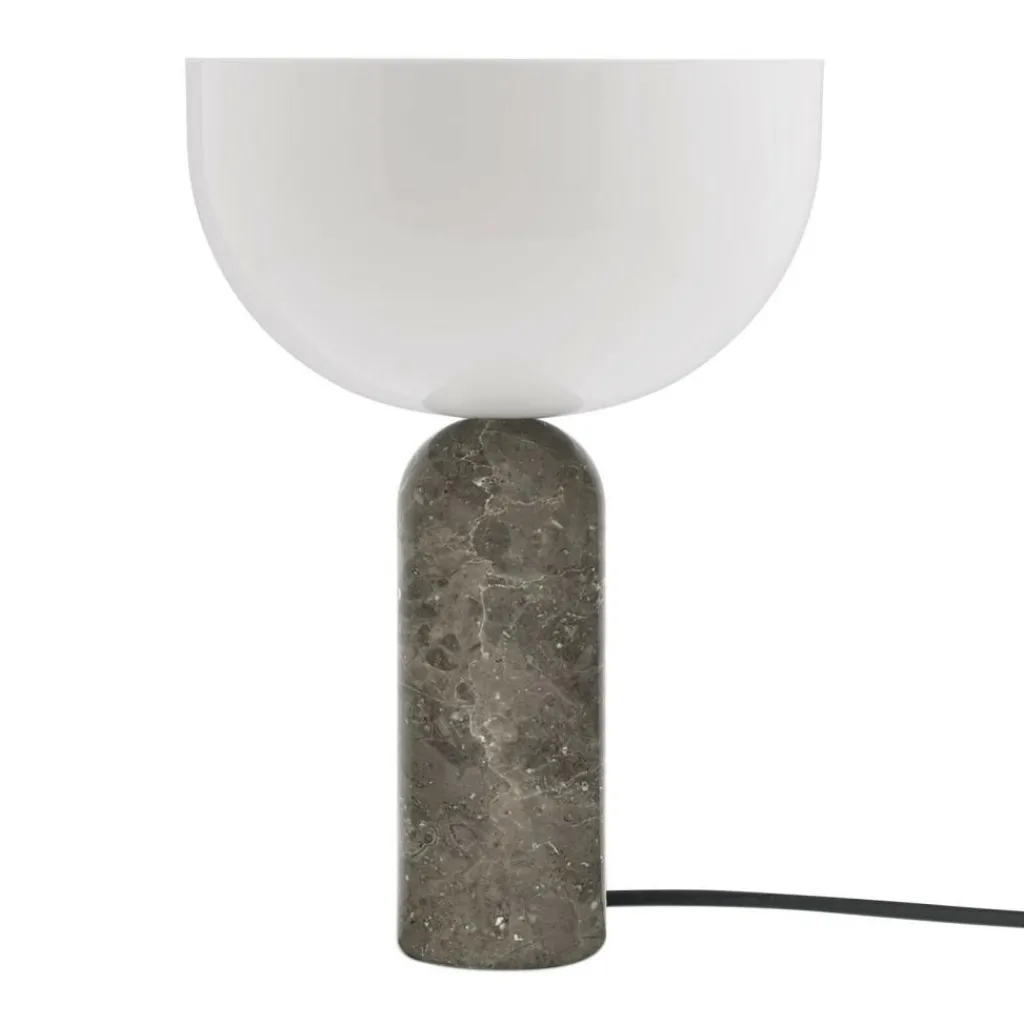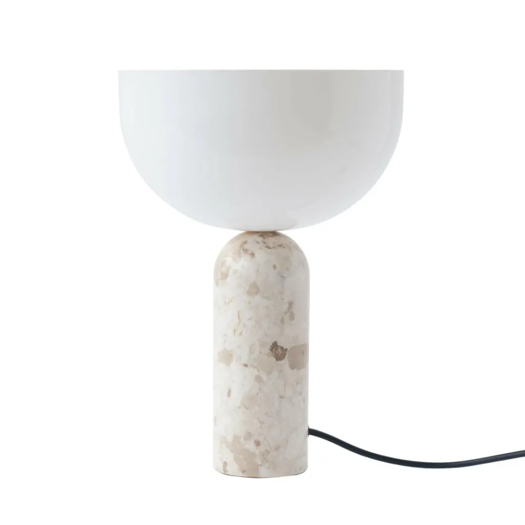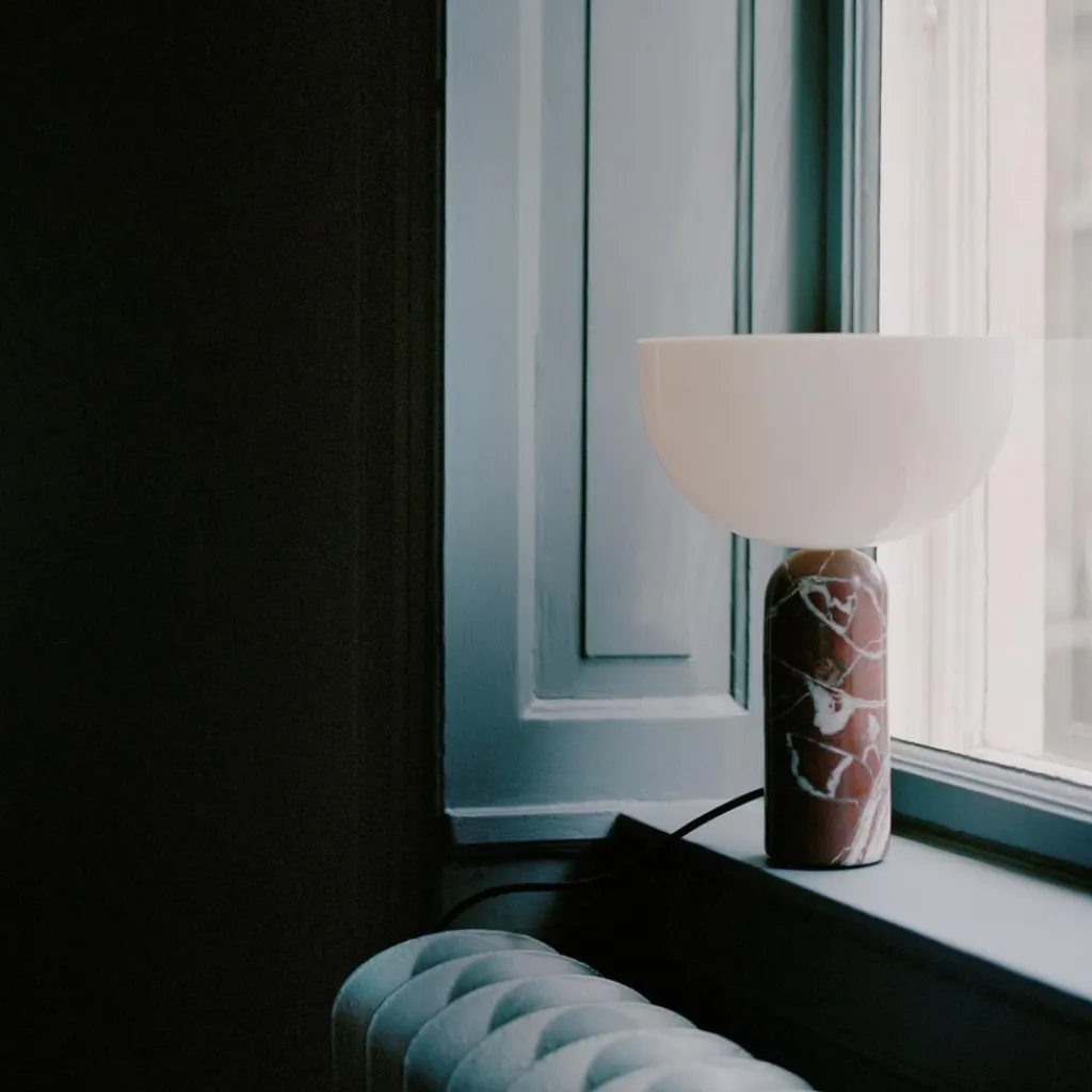 Die Kizu Tischleuchte S wurde von Lars Tornøe für die Marke New Works entworfen. Der Entwurf folgt zwei strengen geometrischen Figuren: Auf dem zylinderförmigen Sockel sitzt ein halbrunder Leuchtenschirm. Anders als bei traditionellen Tischleuchten befindet sich bei der Kizu Tischleuchte S der Leuchtenschirm mit der runden Seite auf dem Sockel.