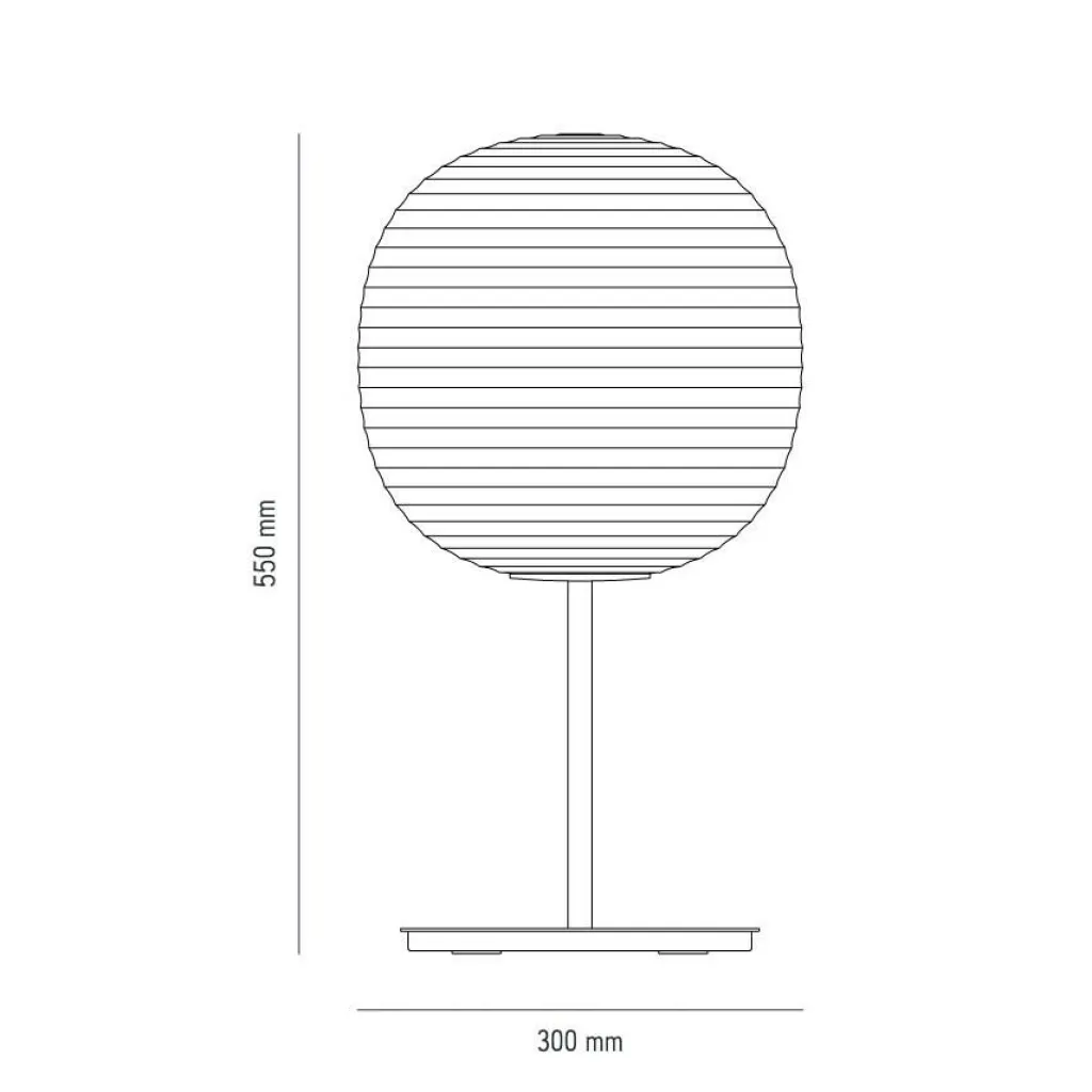 Mit seinen charakteristischen Rillen wirkt der Leuchtenschirm der Lantern Tischleuchte M wie aus filigranem Papier gemacht. Tatsächlich wird jedoch opales Glas verwendet. Kaum eingeschaltet, verbreitet die Leuchte stimmungsvolle Atmosphäre. Ein Grund dafür ist, dass sich der Lichtstrahl an der unebenen Oberfläche bricht. Der kugelige Leuchtenschirm sitzt auf einem schlichten Gestell aus Stahl. Die Basis bildet ein runder Sockel, aus dem das 180 cm lange Textilkabel entspringt. Ungefähr 30 cm vom Sockel entfernt befindet sich darin der Schalter. Damit kann man die Leuchte nicht nur ein- und ausschalten, sondern auch dimmen. Selbst wenn sie nicht eingeschaltet ist, wird die Lantern Tischleuchte M zum Kunstobjekt auf jedem Schreibtisch oder auf dem Nachttisch im Schlafzimmer.