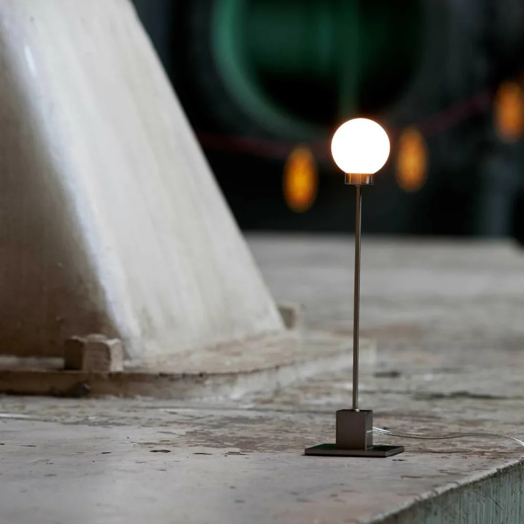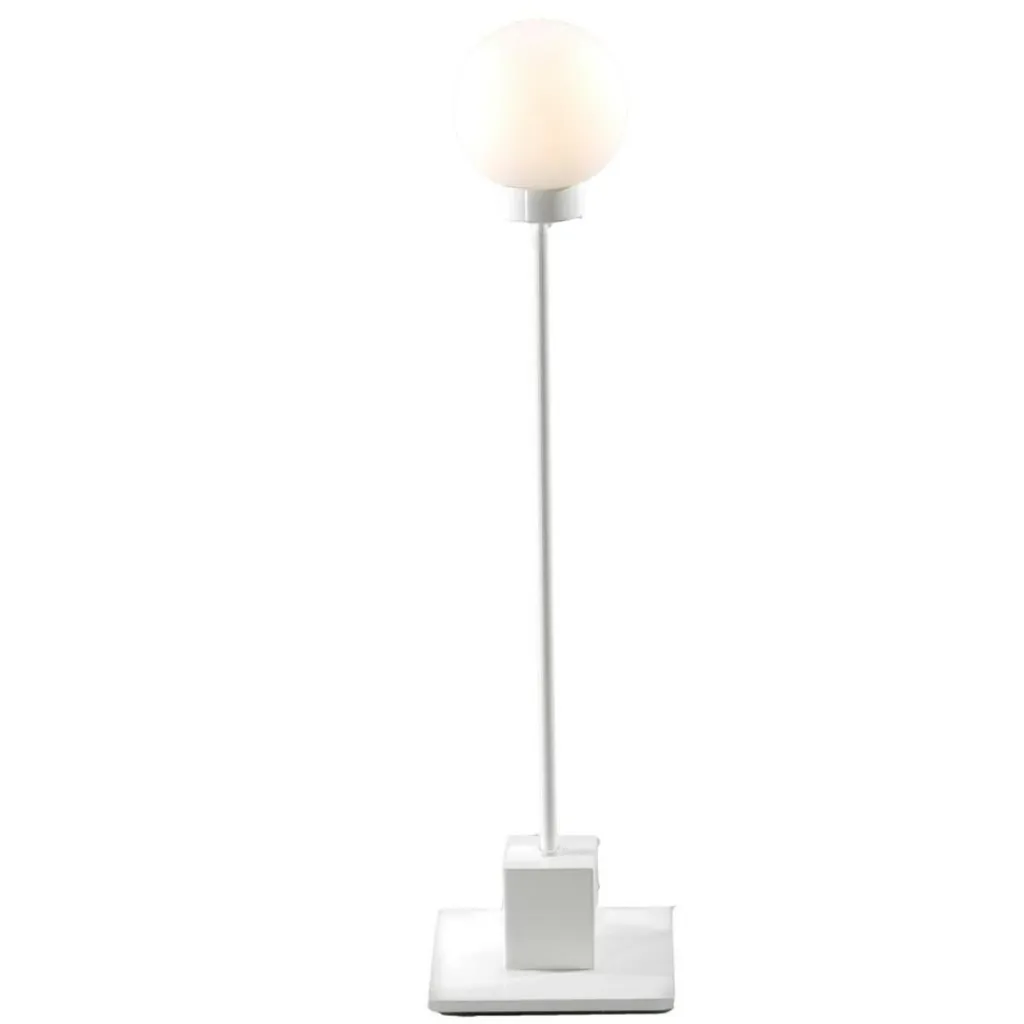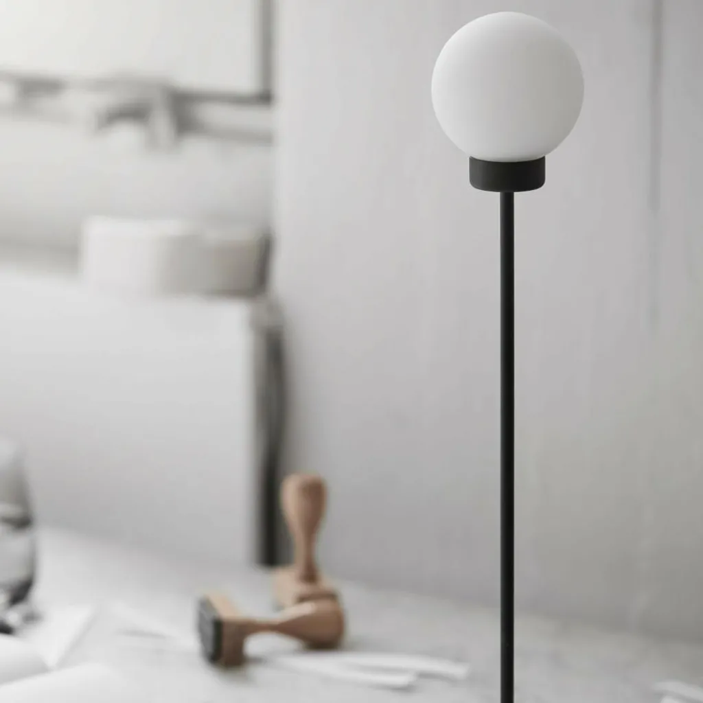 Liebhaber des schlichten skandinavischen Stils sind mit der Snowball Tischleuchte bestens beraten. Sie beschränkt sich auf die wesentlichen Elemente: Eine quadratische Platte dient als Basis, darauf sitzt ein Quader. Aus seiner Mitte entspringt ein schlanker Stab, der zum Leuchtenkopf führt. Wegen ihrer klaren Linienführung erinnert die Snowball Tischleuchte an den Bauhausstil der 1930er-Jahre. Die Basis besteht aus Aluminium und Stahl und ist vernickelt. Das Gestell ist in verschiedenen Farben erhältlich. Der Leuchtenschirm besteht aus mundgeblasenem opalem Glas. Er verbreitet blendfreies Licht in alle Richtung. Der Leuchtenschirm ruht auf einem ringförmigen Sockel. Ein 170 cm langes schwarzes oder transparentes Kabel mit Schalter verbindet die Snowball Tischleuchte mit dem Stromkreis.