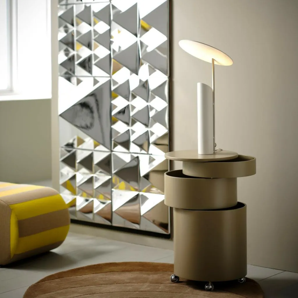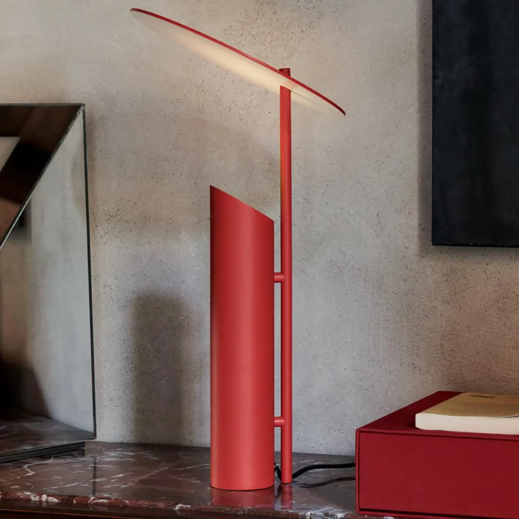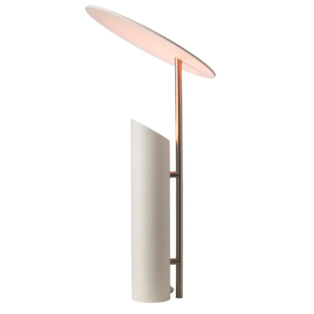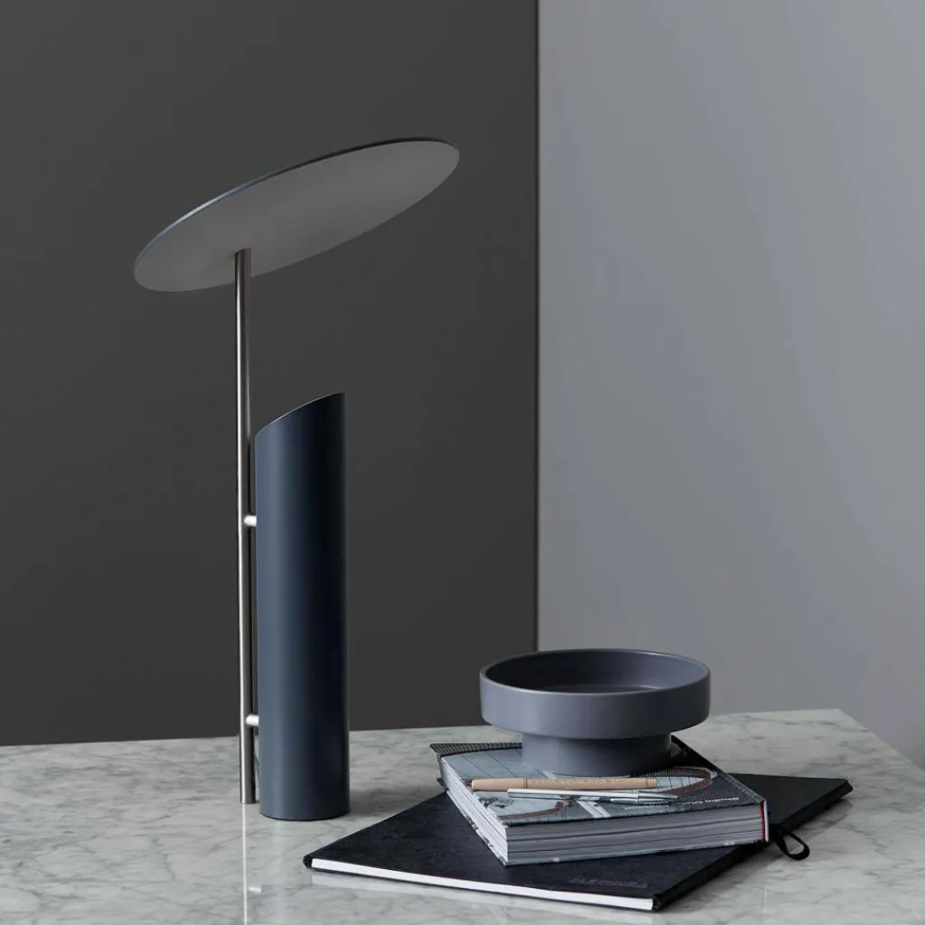 Der Name Reflect bezieht sich auf den Weg, den der Lichtstrahl nimmt, sobald der im Kabel integrierte Schalter betätigt wird. Die Leuchte besteht aus einer röhrenförmigen Basis, die das Leuchtmittel enthält. Dieses gibt den Lichtstrahl senkrecht nach oben hin ab. Da die Innenseite der Röhre weiß lackiert ist, entstehen bereits dort Reflexionen. Der Lichtstrahl trifft dann auf eine über dem Sockel angebrachte runde Scheibe, die schräg montiert ist. Dort wird der Lichtstrahl ebenfalls reflektiert und so gibt die Reflect Tischleuchte diffuses Licht ab. Die Reflect Tischleuchte ist in verschiedenen Farben erhältlich und besteht aus pulverbeschichtetem Stahlblech.