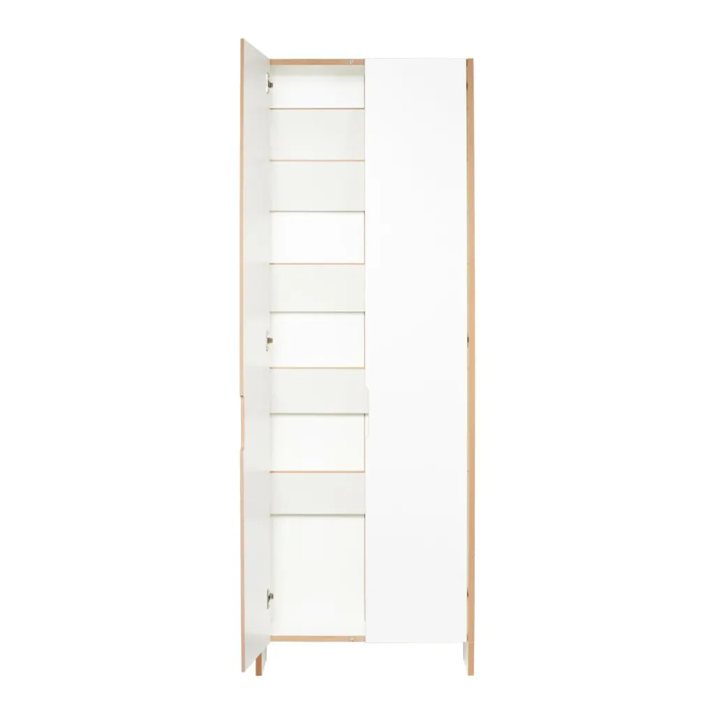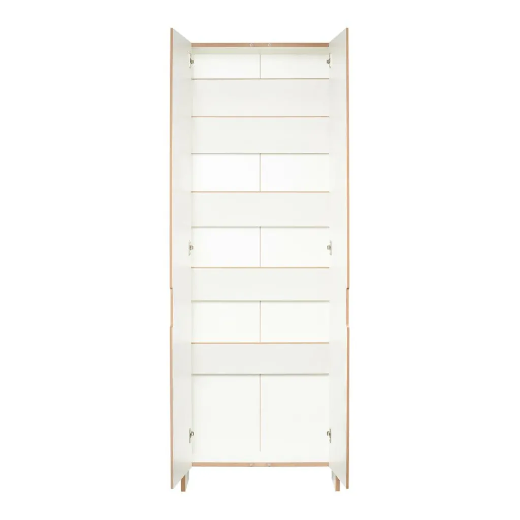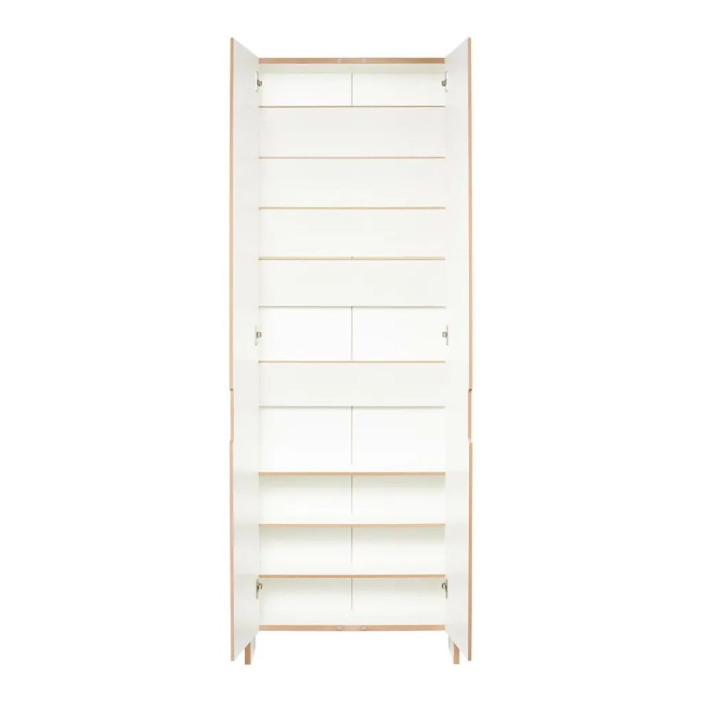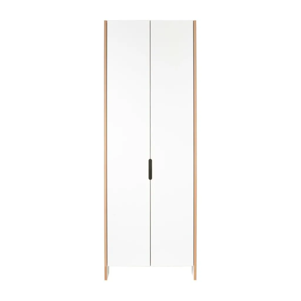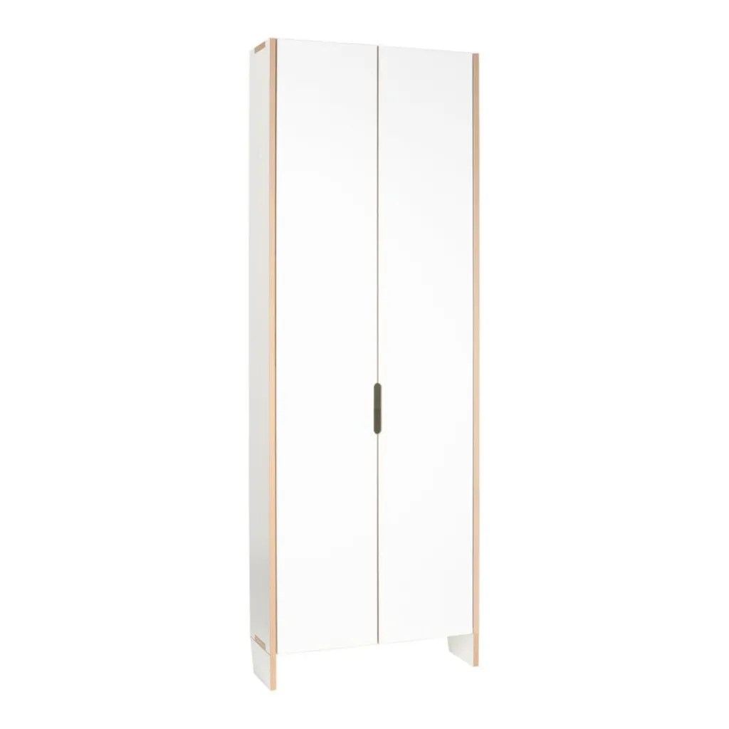 Mit den Füßen ist der Schrank 198 cm, an der Wand montiert 187 cm hoch. Der Schrank ist 70 cm breit und 23 cm tief. Aus derselben Serie gibt es auch einen kleineren Schrank, der sich perfekt mit dem Flachmann Schrank/Schuhschrank kombinieren lässt.