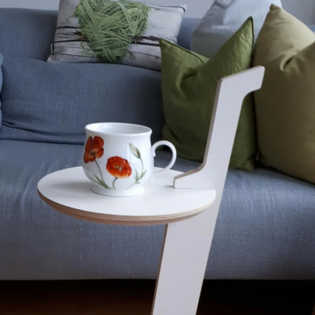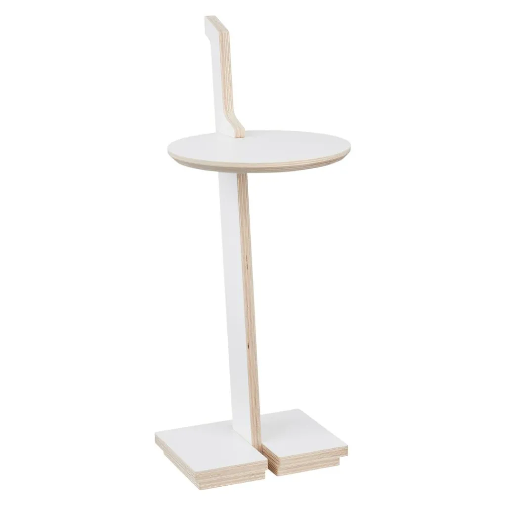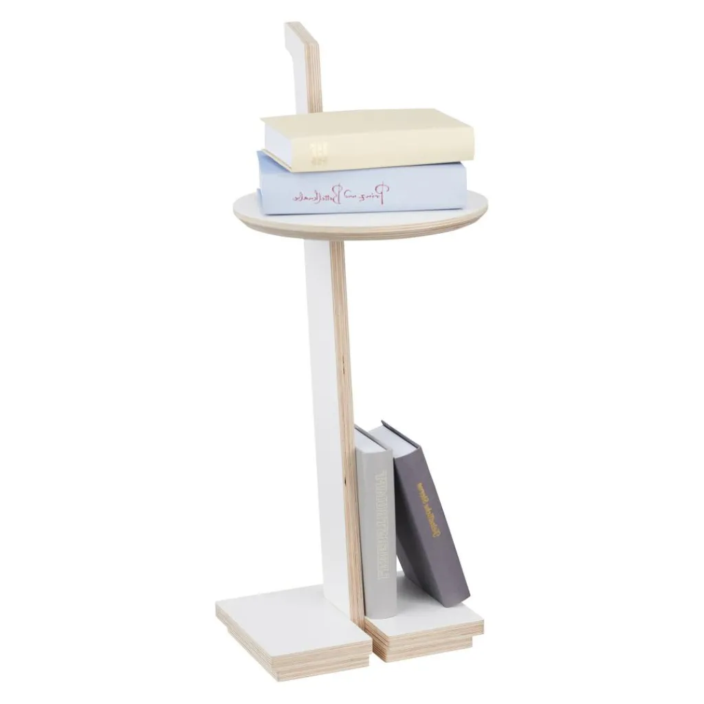 Hinter dem Lesestelle Beistelltisch mit Griff steckt ein ausgeklügeltes Design. Es hat die Jury des German Design Awards im Jahr 2020 begeistert, die ihn mit dem Special-Mention-Preis auszeichnete. Für den Lesestelle Beistelltisch mit Griff verwendet der Designer beschichtetes Birken-Multiplex. Als Basis dienen Bodenplatten, die als Ablagefläche für Bücher dienen. Daraus erhebt sich ein schlanker Fuß, der die runde Tischplatte zur Halterung seitlich einschneidet. Der Lesestelle Beistelltisch mit Griff kann als Stehpult oder Beistelltisch verwendet werden. Er passt in das Wohn- oder Jugendzimmer, ins Büro oder Homeoffice. Auf der Tischplatte können Gläser, Arbeitsutensilien und viele weitere Gegenstände abgestellt werden.