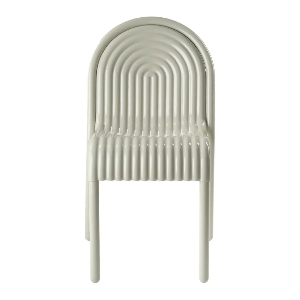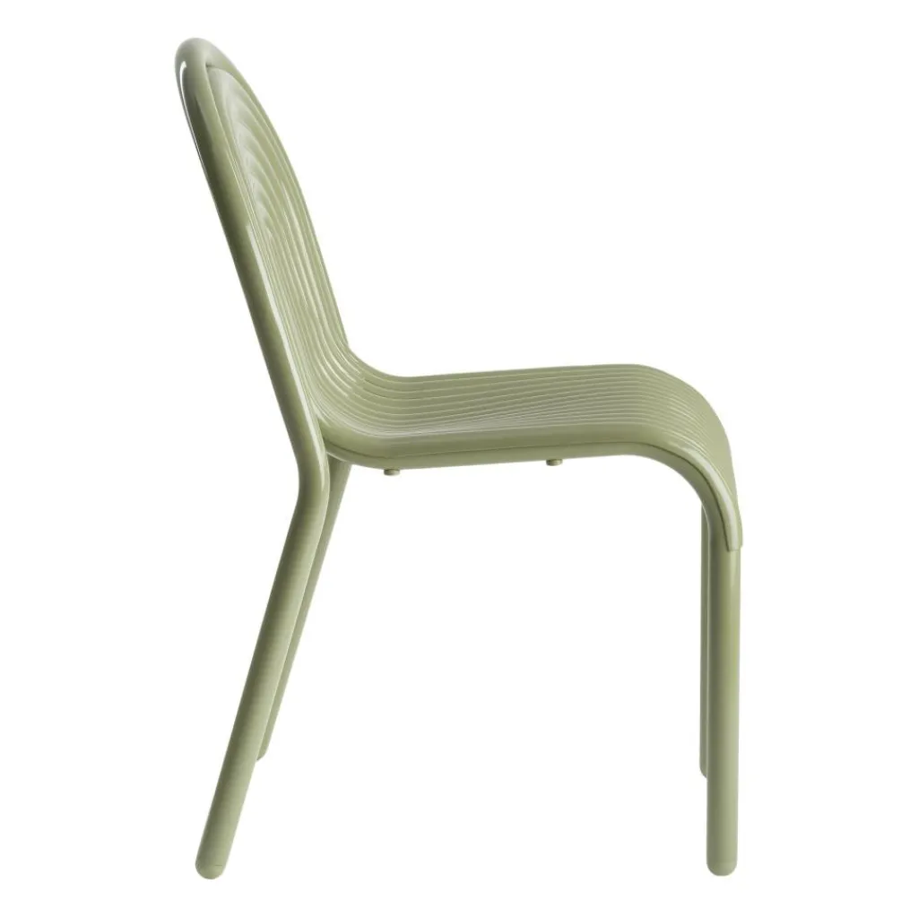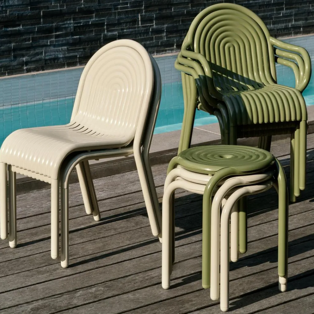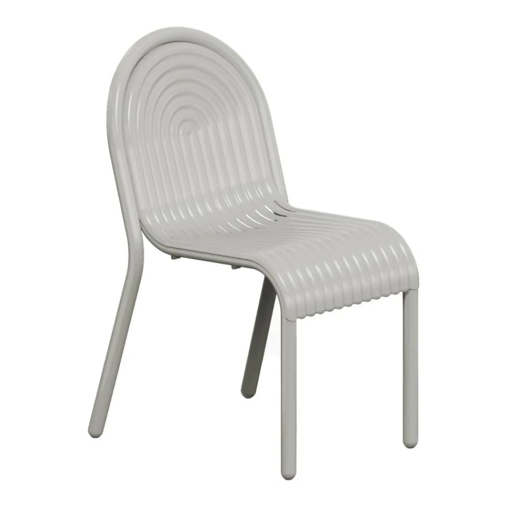 Tatsächlich ist die Möbelreihe mit den geschwungenen Linien und der imposanten Optik die erste für den Außenbereich des britischen Herstellers. Die dynamische Form des Groove Gartenstuhl wird durch eine sanft geformte Sitzfläche und eine abgerundete Rückenlehne geprägt, die leicht nach hinten geneigt ist, um optimalen Komfort zu gewährleisten. Die prägnanten Rillen, die sich durch Sitz- und Rückenfläche ziehen, sorgen nicht nur für eine besondere Optik, sondern auch für einen hohen Wiedererkennungswert des Stuhls. Die nach unten verlängerte und scheinbar auslaufende Sitzfläche verstärkt das harmonische Gesamtbild und unterstützt eine entspannte Sitzhaltung. Das leichte, aber widerstandsfähige Aluminiumgestell ist mit einer langlebigen Pulverbeschichtung versehen, die Schutz vor Witterungseinflüssen bietet. Korrosionsbeständig und pflegeleicht eignet sich der Stuhl perfekt für den Einsatz im Freien. Mit einem Gewicht von nur 4,2 kg ist er zudem angenehm leicht. Außerdem ist er stapelbar und lässt sich so platzsparend verstauen. Seine Maße – 47,2 cm Breite, 57,2 cm Tiefe und 81,6 cm Höhe – bieten eine ausgewogene Kombination aus Stabilität und Flexibilität. Die Sitzhöhe beträgt 45,5 cm.