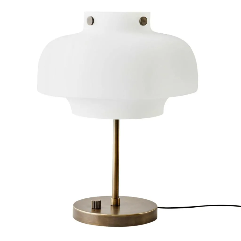 Die nach der dänischen Hauptstadt benannte Copenhagen SC13 LED Tischleuchte ist Teil einer Kollektion von weiteren Leuchten und besteht aus Messing und mundgeblasenem Glas. Die 4,4 kg wiegende Leuchte ist 42 cm hoch, der Durchmesser des Sockels beträgt 17,5 cm und der des Schirms 33 cm. Die aus dem Jahr 2018 stammende und an der Basis dimmbare Copenhagen SC13 LED Tischleuchte wird mit eingebautem LED Modul 8W geliefert. Das je nach Einstellung warme bis kaltweiße Licht strahlt nach unten und seitwärts aus. Die mit einem feuchten Tuch leicht zu reinigende Leuchte für den Innenbereich entfaltet ihr bestechendes Design am besten als Nachttischlampe, auf einer Kommode oder am Schreibtisch.
