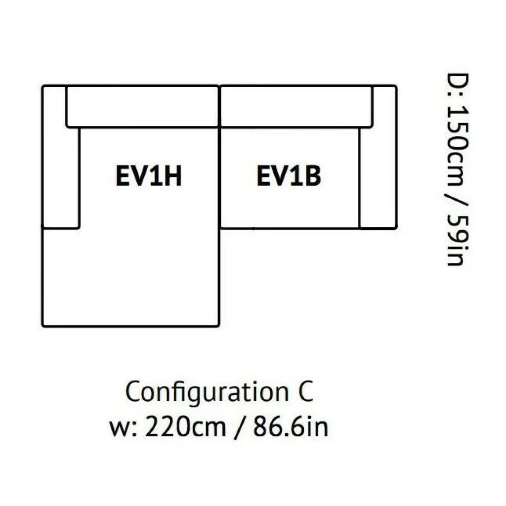 Dank der gut kombinierten Maße von B x H x T: 220 x 70 x 150 cm, einer Sitzhöhe von 42 cm und der Armlehne in Höhe von 60 cm schafft das Develius 2-Sitzer Sofa mit Chaiselongue links auch in kleinen Räumen viel Platz zum Sitzen. Das hochwertige Sitzmöbel ist aus Metall, Holz und Polyester gefertigt, strapazierfähig und elegant zugleich.