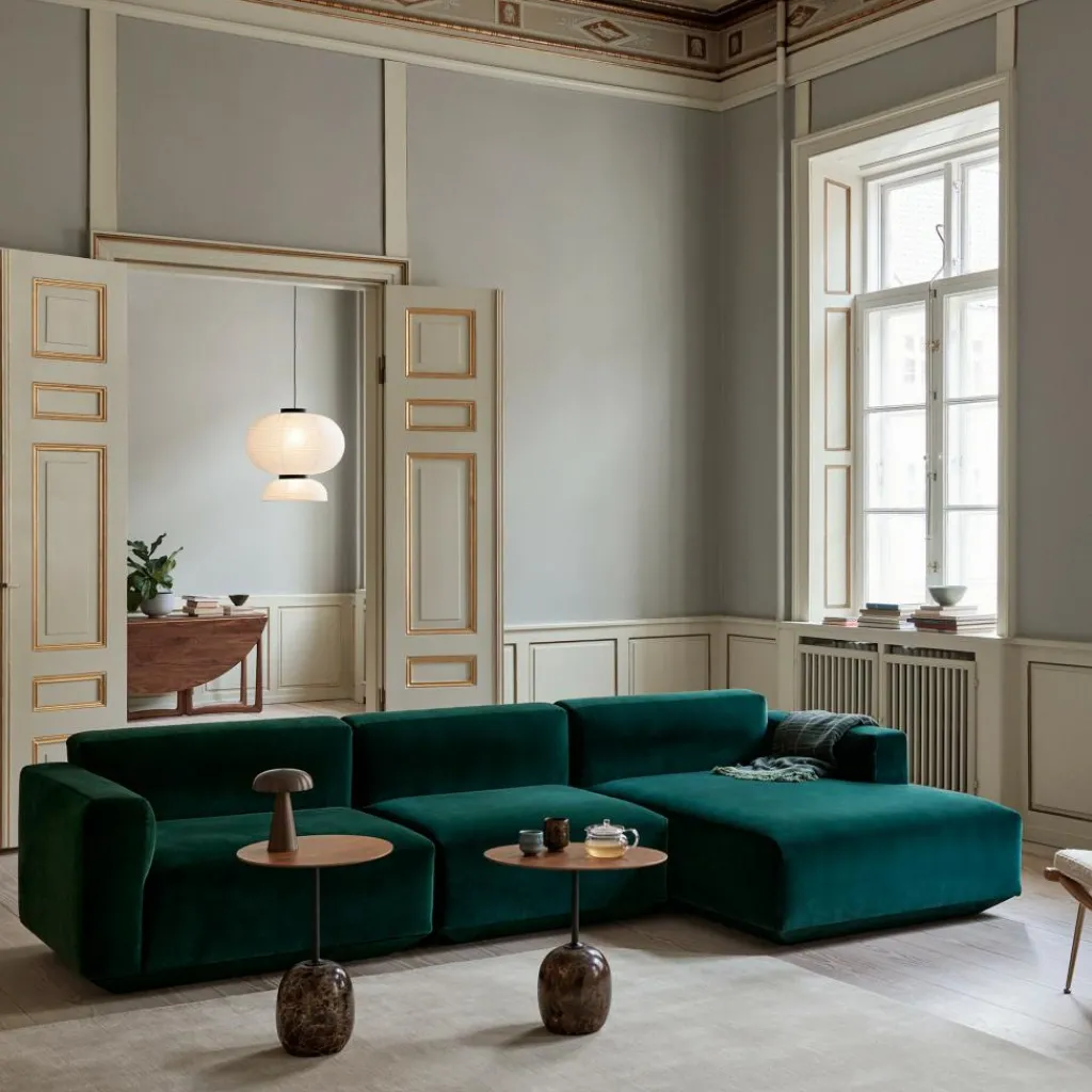 Das attraktive Develius 3-Sitzer Sofa Chaiselongue links wurde von Designer Edward van Vliet für den Hersteller &Tradition entworfen. Mit seinem stilvollen Design füllt es ganze Wohnräume aus und bietet dazu eine wunderbar bequeme und funktionale Sitzfläche für bis zu drei Personen.